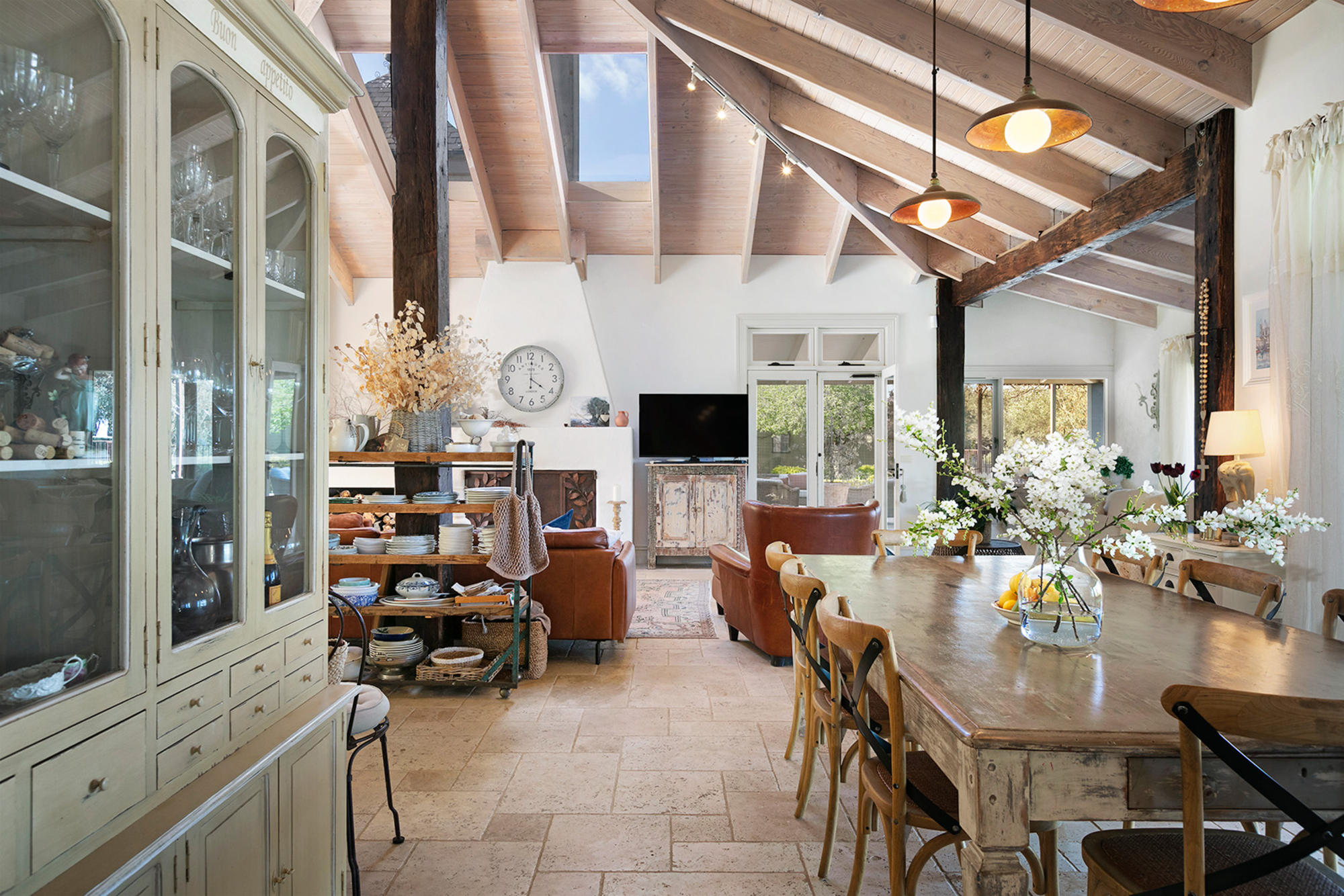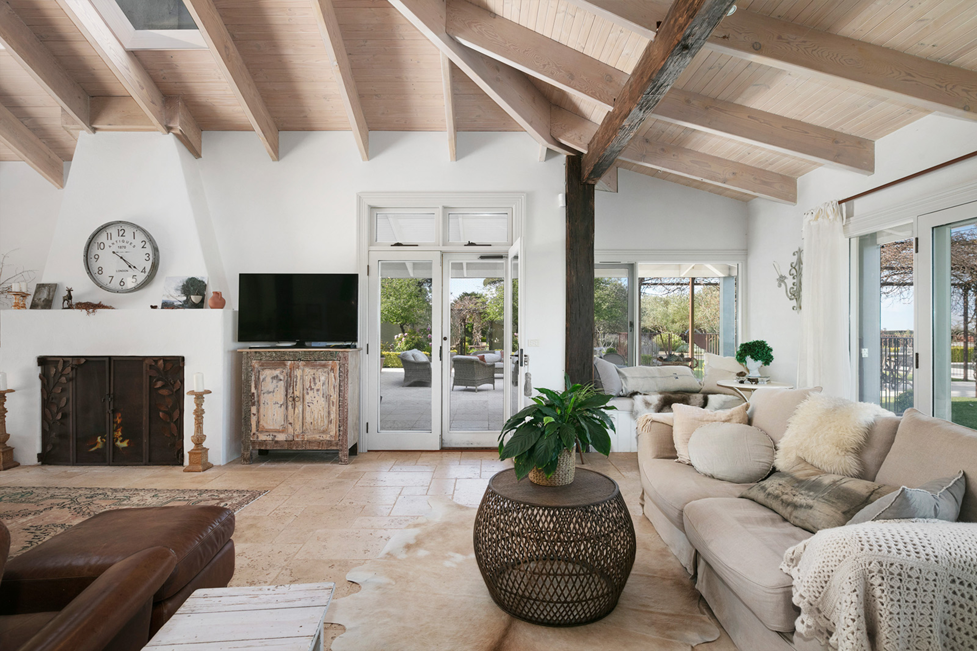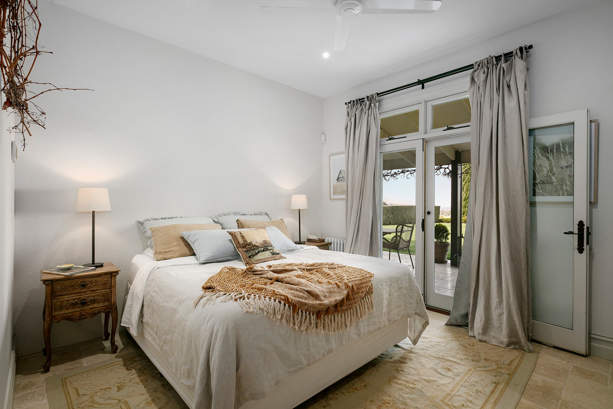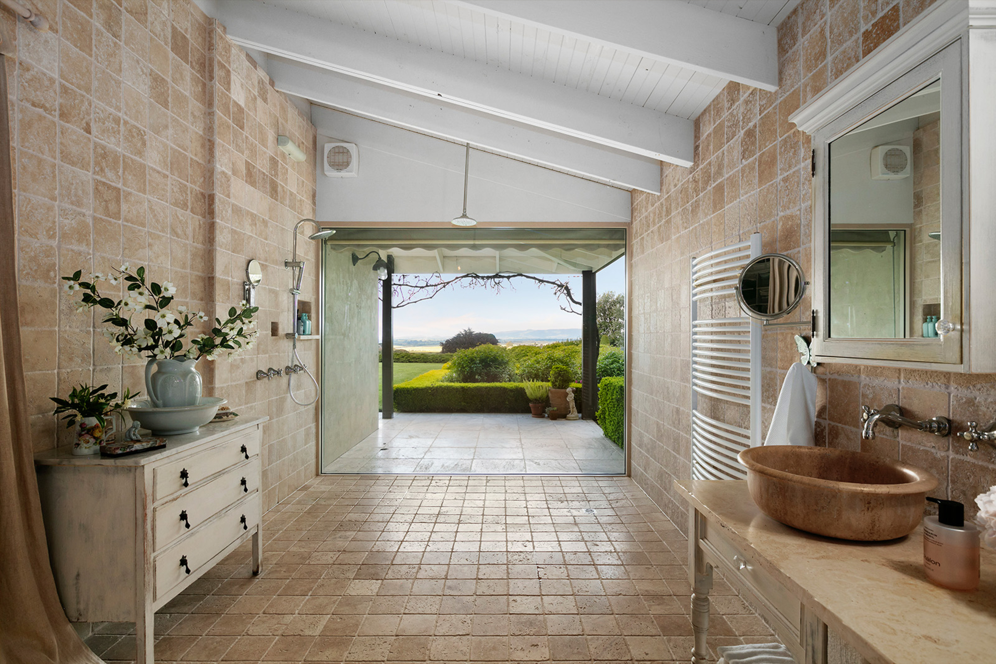 Magnificently nestled within one of the most beautiful garden settings in the region and commanding uninterrupted views to the Macedon Ranges, this stunning designer residence provides a unique rural lifestyle only 15 minutes to Kyneton, 20 minutes to Daylesford, and 55 minutes to the airport. Behind a charming fountain and vibrant beds of lavender, custom designed double doors reveal impressively proportioned living spaces featuring travertine floors, soaring timber lined ceilings and breathtaking views over the gardens to the ranges. Brilliantly designed for both relaxed family living and entertaining, the free-flowing living, sitting and dining areas with fireplaces (including one by Philippe Cheminee) at each end surround a country style gourmet kitchen with rustic timber table, stone benches and a 90cm Ilve oven. Multiple sets of French doors to the east, north and west extend the living areas out to the surrounding gardens including an undercover BBQ terrace, ornamental grapevine covered pergola and the picturesque, heated infinity pool and spa with the ranges as its backdrop. A superb accommodation wing comprises the glorious main bedroom featuring a travertine en suite with a view and lavish dressing room, a second bedroom with travertine en suite, two additional double bedrooms, a travertine bathroom and expansive media/billiards room with projector and screen. Upstairs there is an inviting sun-filled study or studio offering wonderful views. An internally accessed recycled timber-lined triple garage is the perfect party venue while a renovated shearer’s shed is now the ultimate entertainer’s zone complete with kitchenette, 4 bar fridges, a “whiskey lounge”, his and her toilets and large decks on both sides. Changing colour with the seasons, the spectacular gardens include a vast lawn surrounded by high manicured hedges, a Tuscan olive grove, rose gardens, citrus trees, a connecting dam with bridge, a walled vegetable/herb garden, large fragrant flowerbeds and a vast array of established oak, elm, pin-oak, pear, Cypress and pencil pine trees. An utterly serene and peaceful oasis behind secure remote gates and a long tree-lined return drive, this extraordinary property includes 2 machinery sheds, water tanks, an alarm, hydronic heating, powder-room, laundry with drying room, wine cellar, large storeroom, extensive irrigation, potting shed and fountain. Land size: 16 Acres (approx.)