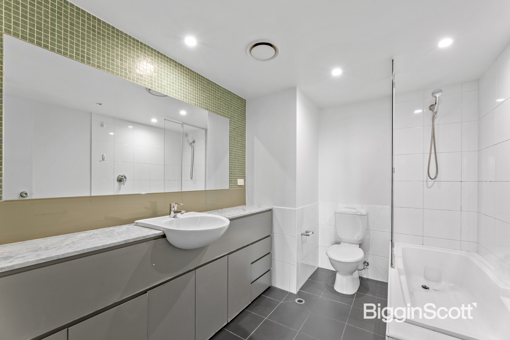 Two spacious bedrooms adorned with mirrored built-in robes provide sanctuary and organization. Step out onto the expansive balcony and soak in the open city vistas – a perfect retreat to unwind after a busy day. Additional luxuries include ducted air conditioning and heating, intercom security, and peace of mind with a secure building and dedicated parking for one vehicle.