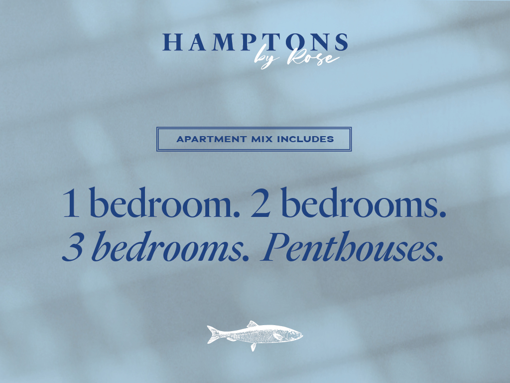 Offering an exquisite variety of generously sized 1 and 2 bedroom apartments, many with studies, and a rare compilation of oversized 3 bedroom apartments and penthouses, Hamptons will surpass your expectations.