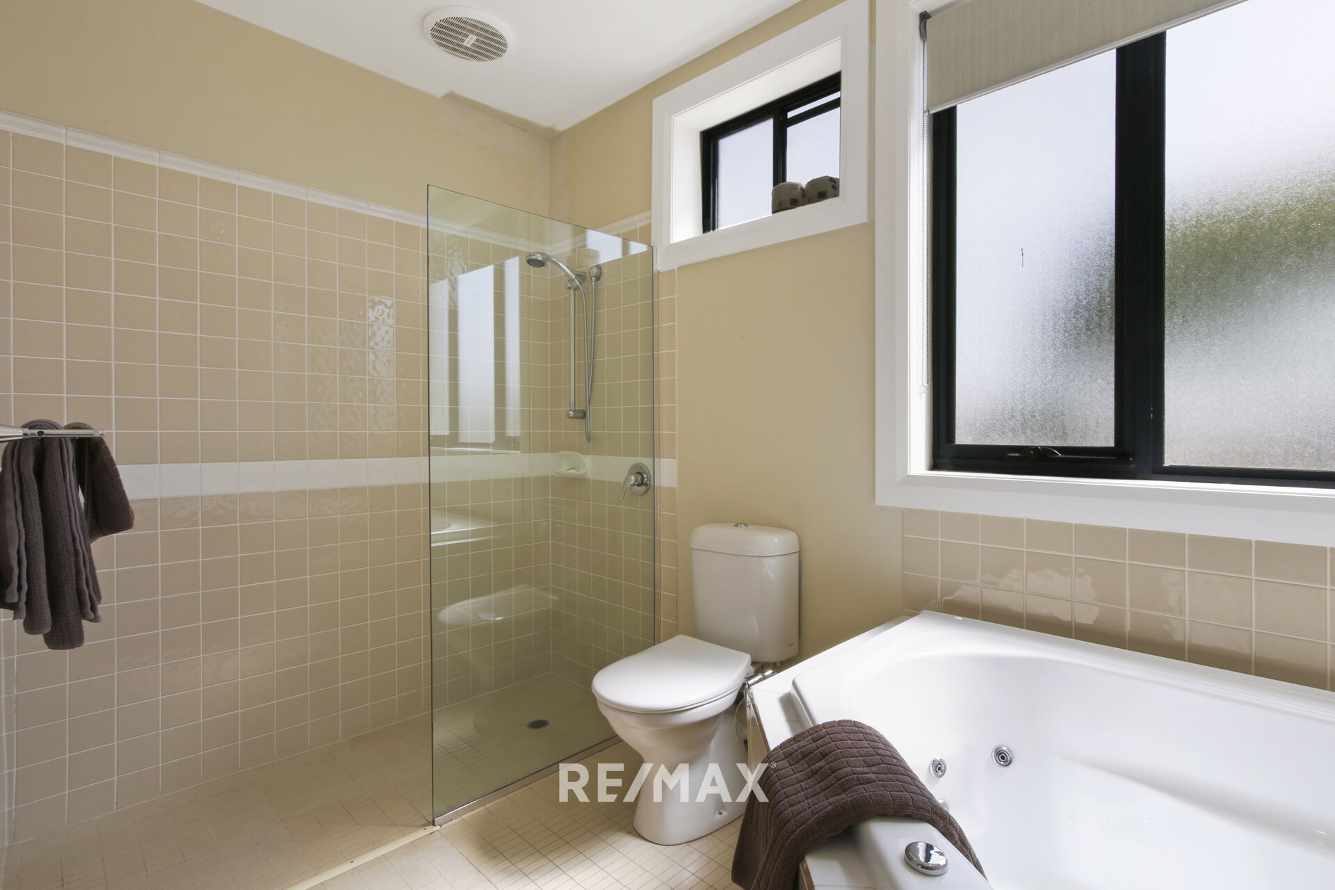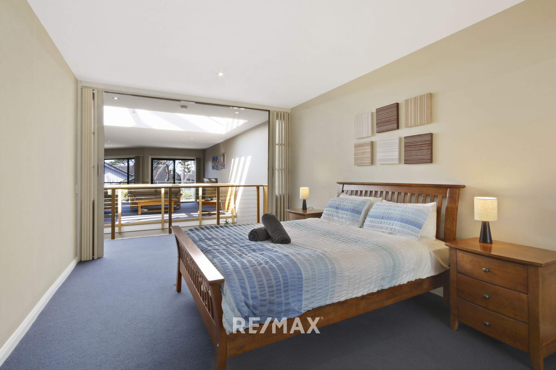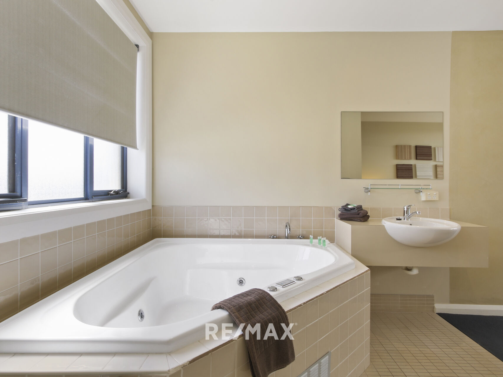 Moving upstairs, you will find the master bedroom, which features a large ensuite with a corner spa bath, built-in robes and a bi-fold glass door for additional privacy.