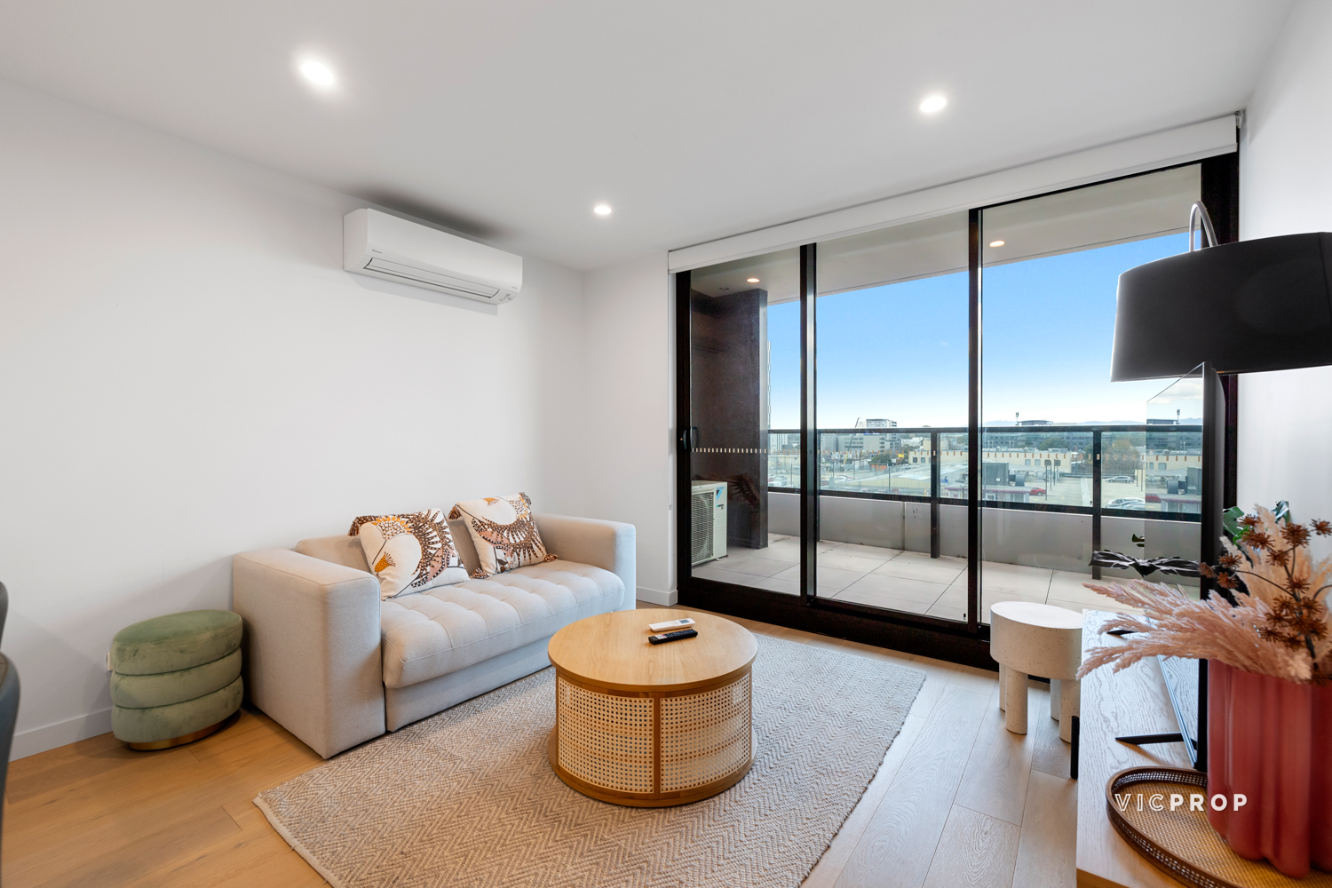 Included is a living room split-system A/C, engineered flooring, floor-to-ceiling windows; and resident-only pool, gym, lounge, and barbecue terrace.