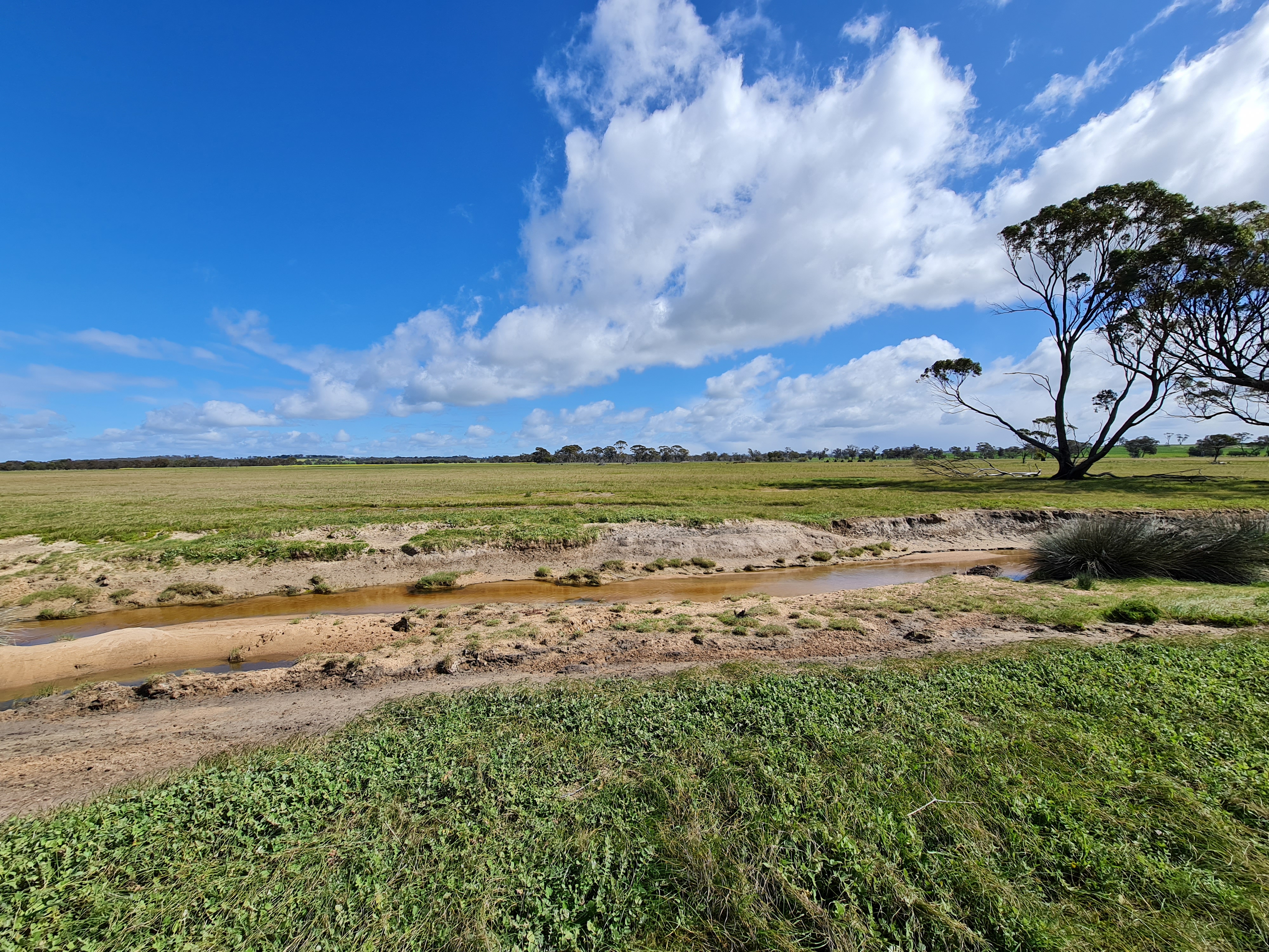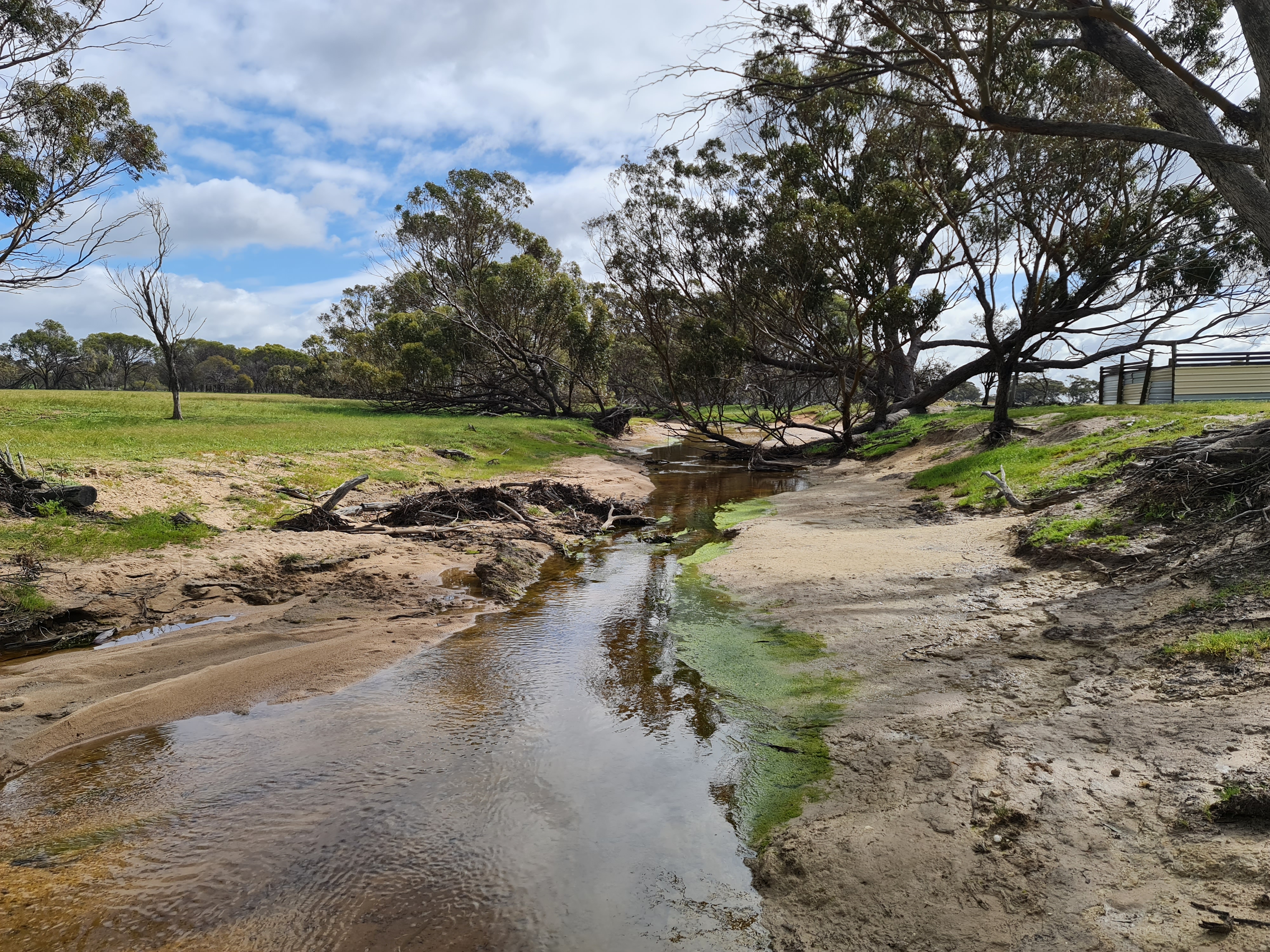 Lease it out and just enjoy the solitude or start your own agricultural venture to supplement your current income. Critical scheme water running right past allows scope to run stock without the concerns of any water shortages. Couple of small sheds and 2 winter creeks flowing in September at time of photo's.