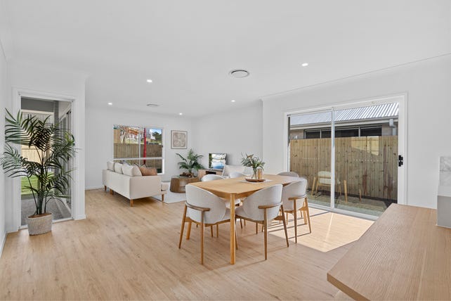 Open plan living and dining leads out through sliding glass doors to the patio and family friendly, fenced backyard.