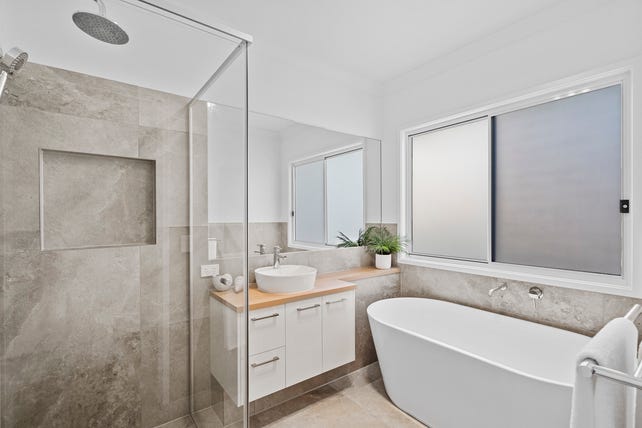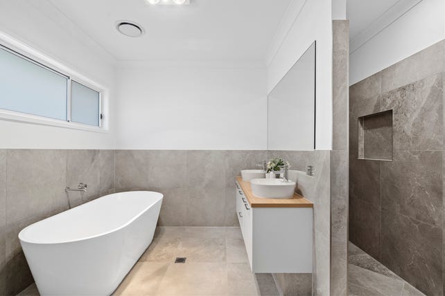 Four bedrooms, including a grand primary bedroom boasting a spacious walk in robe and ensuite with dual vanity and bathtub.