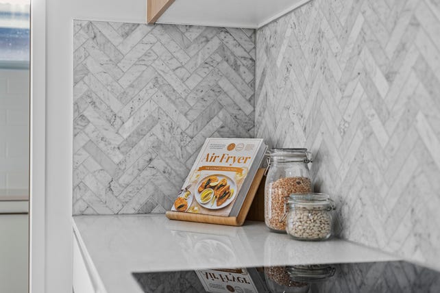 The Chef inspired kitchen is spacious with stone bench tops, quality appliances, plenty of cupboard space