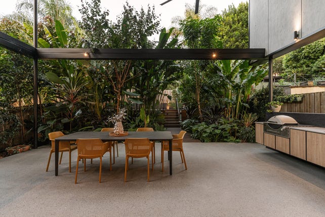 - Extends out to lush tropical gardens and private plunge pool