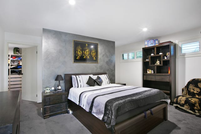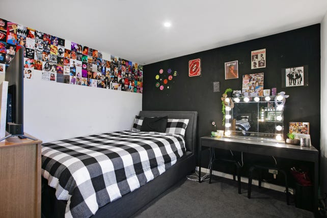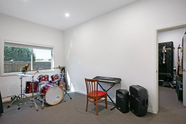 On the ground floor, two additional bedrooms offer flexibility, one of which is fully sound proof and is currently set up as a music studio, alongside a powder room and a spacious laundry. Upstairs, a bright second living zone or home office soaks in northern light, leading to three more bedrooms, including a luxurious master suite with walk-in robe and a sophisticated ensuite boasting a walk-in shower and double vanity. A further central bathroom services the remaining bedrooms.
