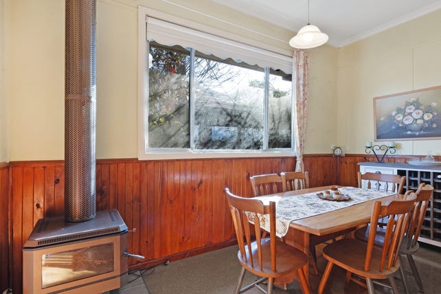 The formal lounge is at the front of the home and offers a lovely, peaceful room with street views. 2 comfortable bedrooms, an updated bathroom and kitchen with adjoining dining room with wood heating.