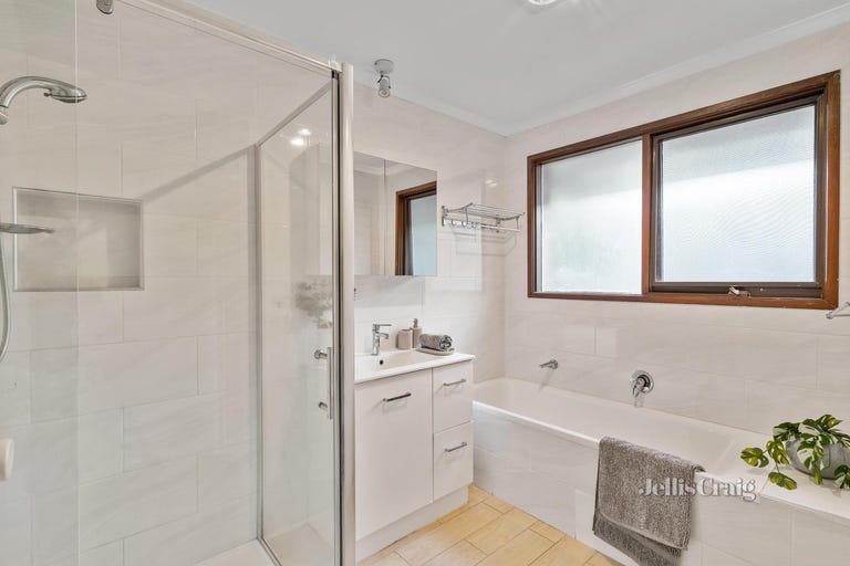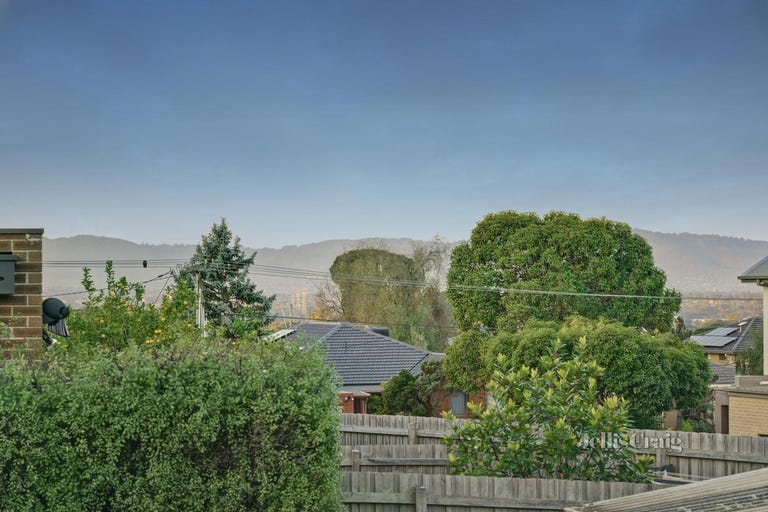 At the rear of the home, the rumpus room is perfect for entertaining and opens via sliding doors onto an entertainer’s deck with Dandenong Ranges views and steps to the backyard with paved parking/entertaining area.