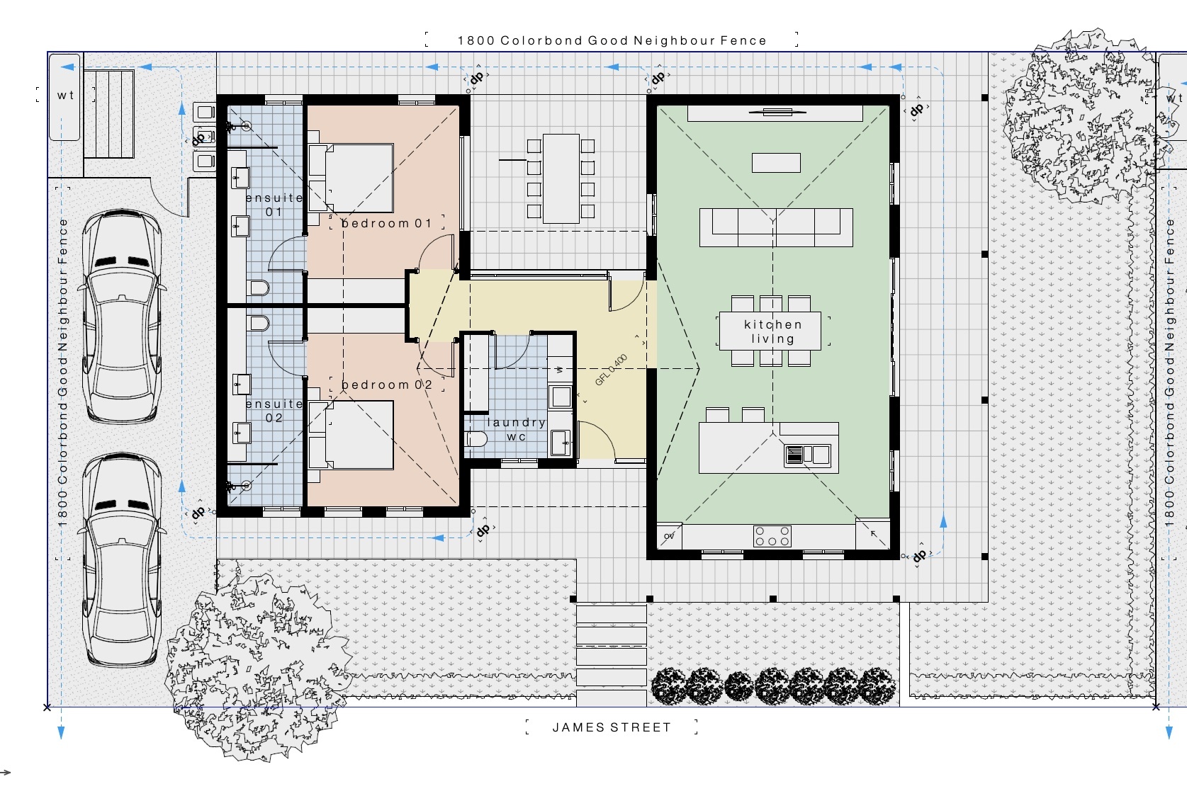 • Architectural Designed and fully specified • Full development approval • Two separate dwelling on two separate titles • Two bedrooms, two bathrooms (Ensuites) • Central Robe living