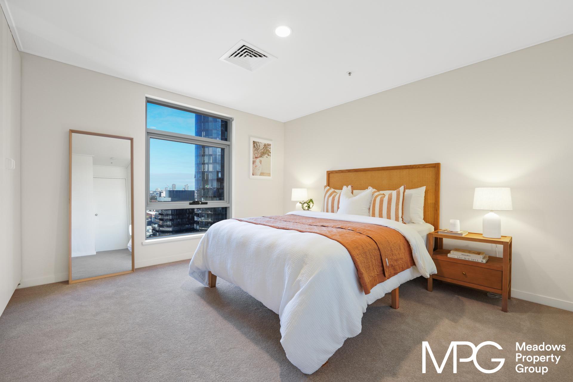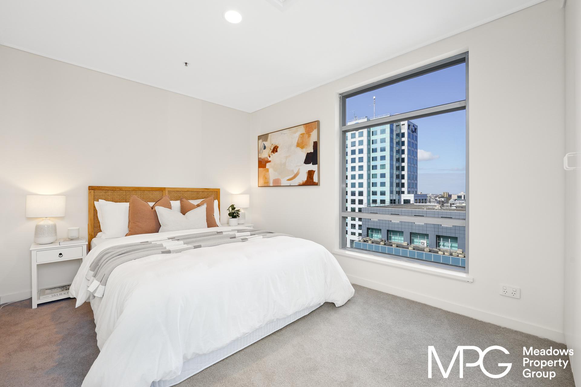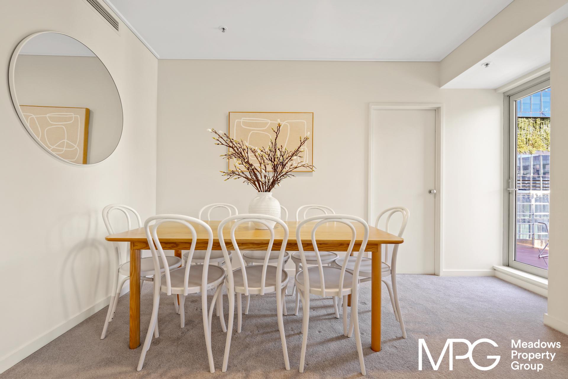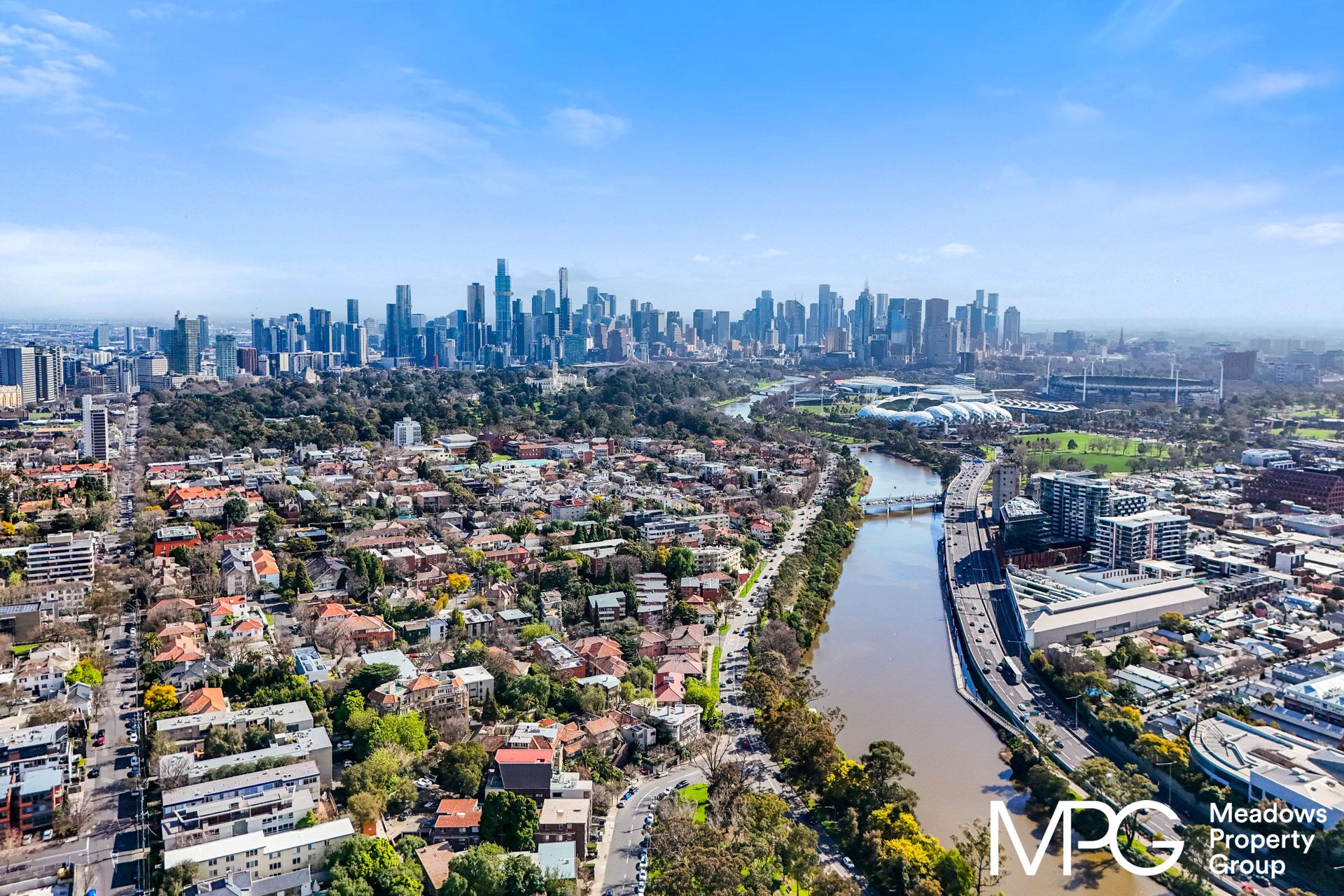 Both spacious bedrooms include exceptional storage with build in robes, offer sweeping skyline views and are complemented by a large bathroom with separate formal laundry. The open plan living and dining area, enhanced by large bay windows, captures the dramatic skyline of South Yarra, while the partially separated kitchen is designed with the culinary enthusiast in mind.