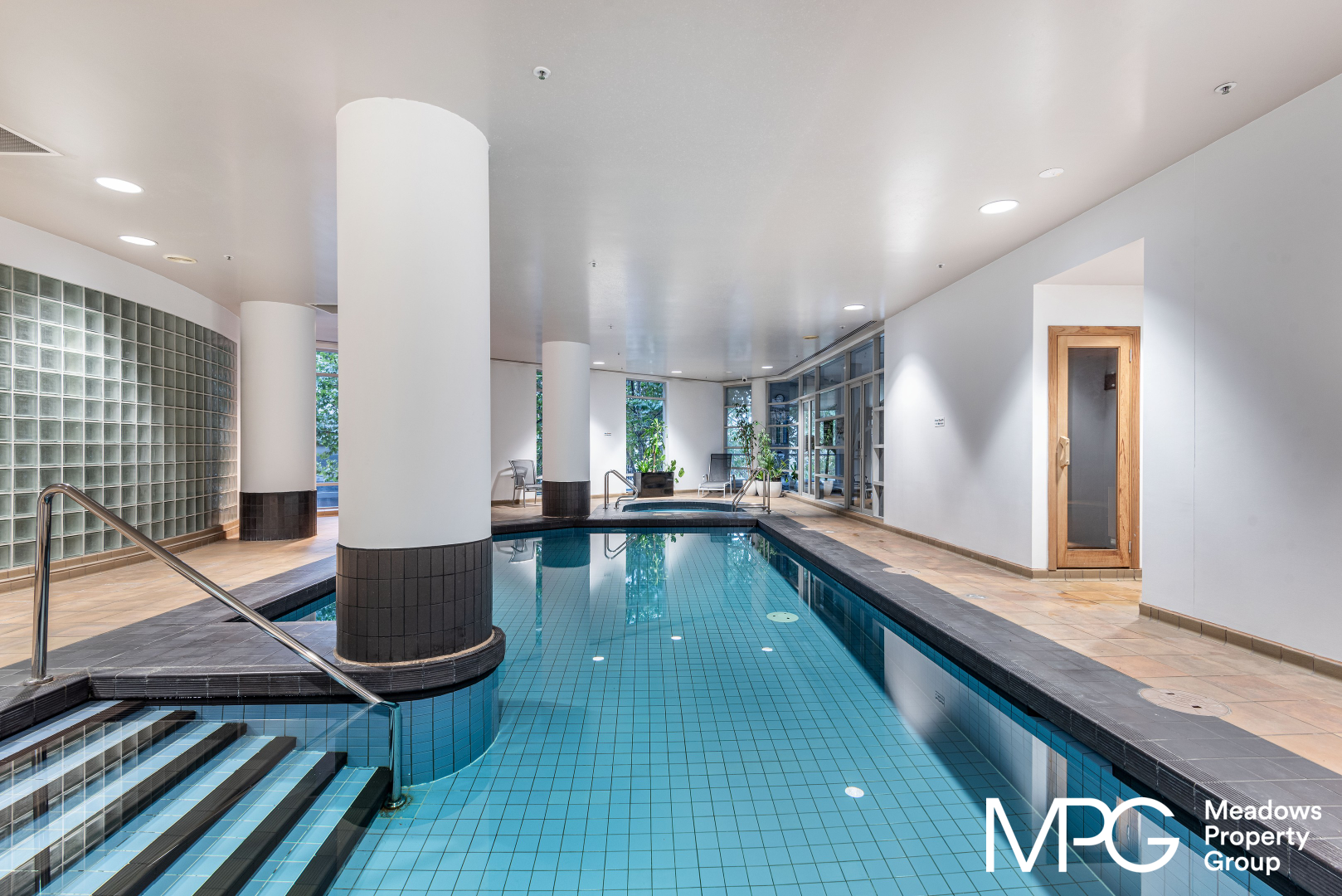 Additional features include a generous storage room and secure off-street parking (both on separate titles), full laundry, heating and cooling, security entry, and exclusive access to the building's exceptional amenities, including an indoor swimming pool and a fully equipped gym. This is sophisticated urban living at its finest.