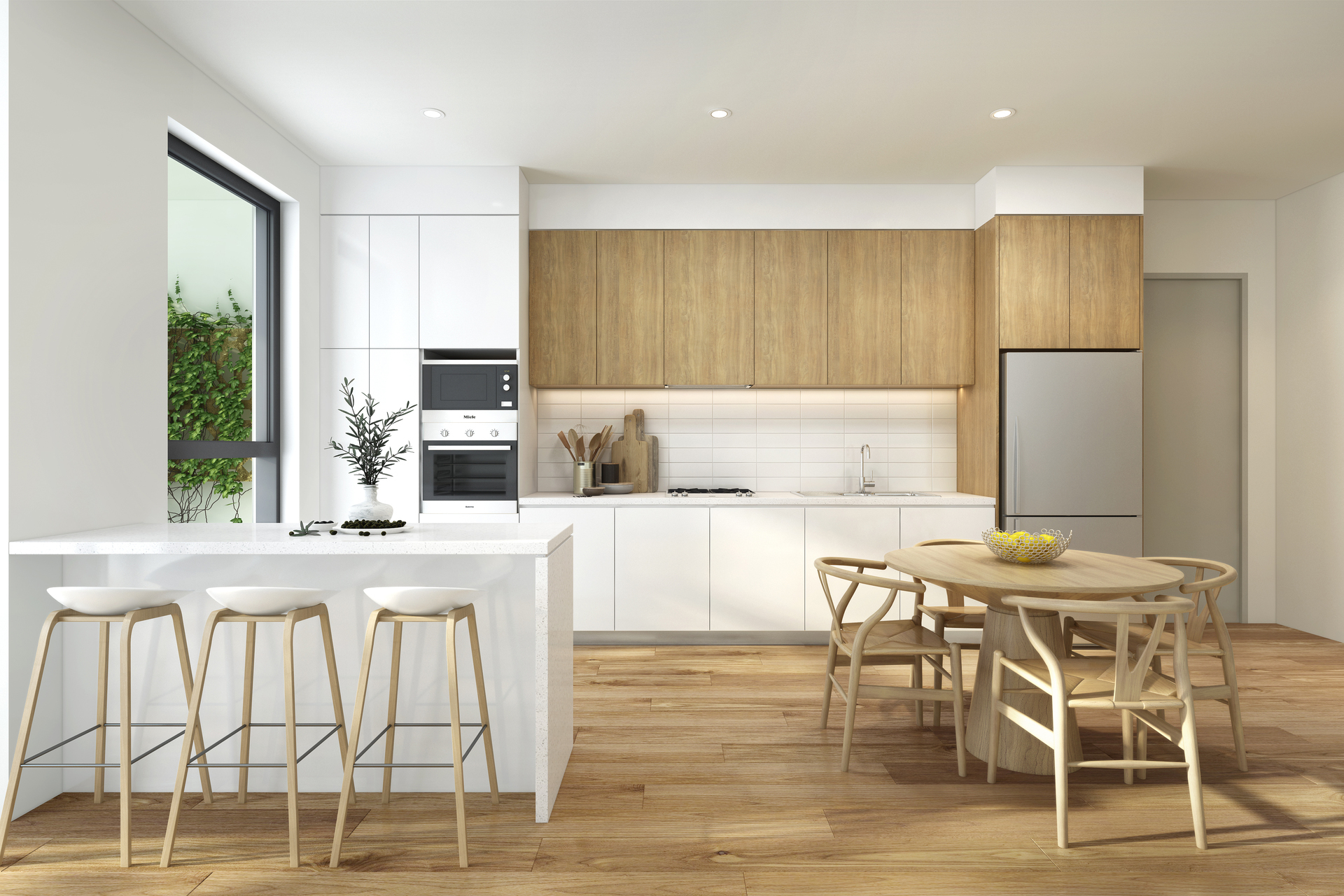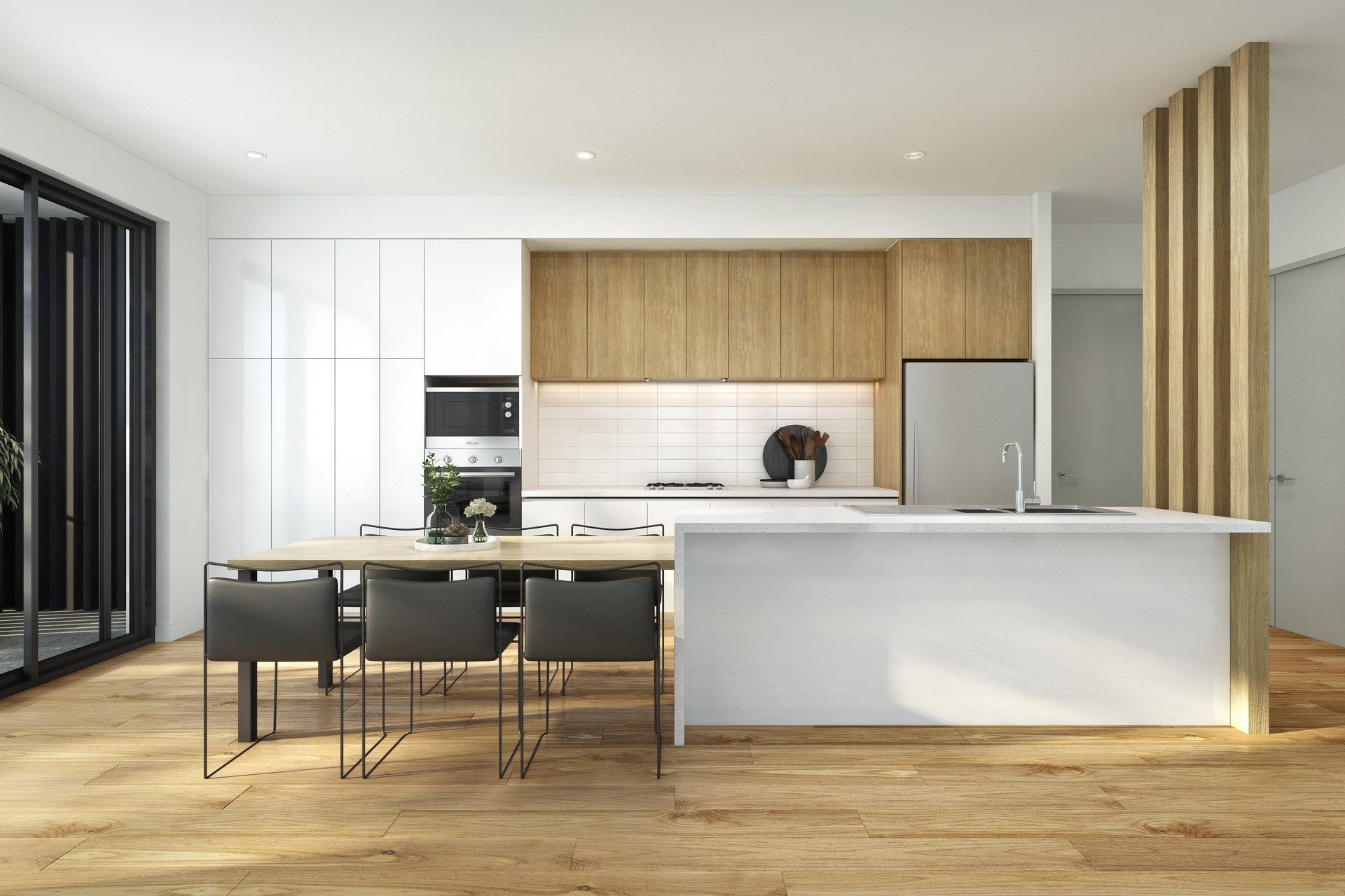 Spacious combined lounge and dining rooms flow seamlessly onto large balconies with plenty of room to enjoy an evening drink or morning coffee. The stylish kitchen offers stone bench tops, finger pull joinery, top of the range stainless steel appliances and abundance of cupboard and bench space.