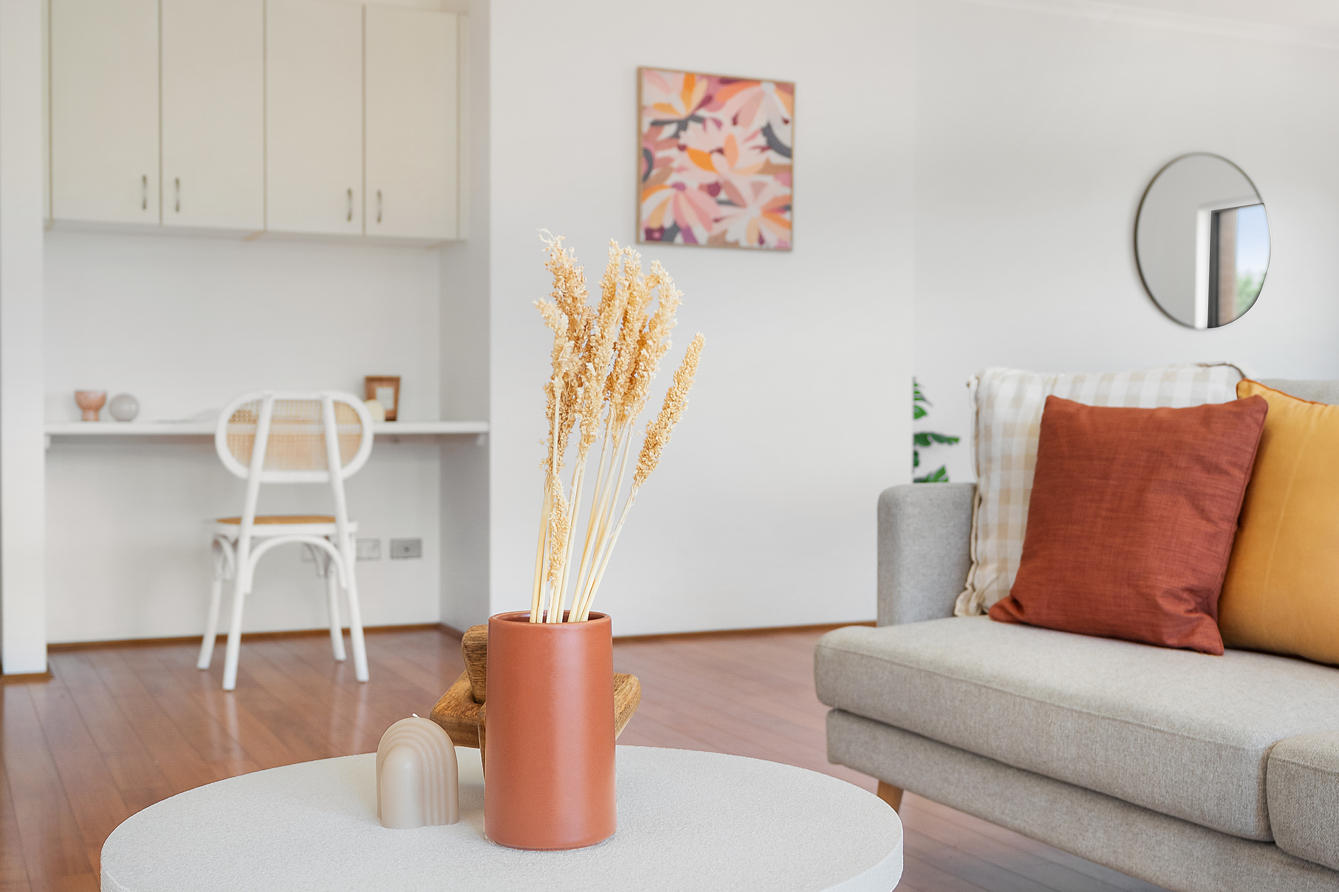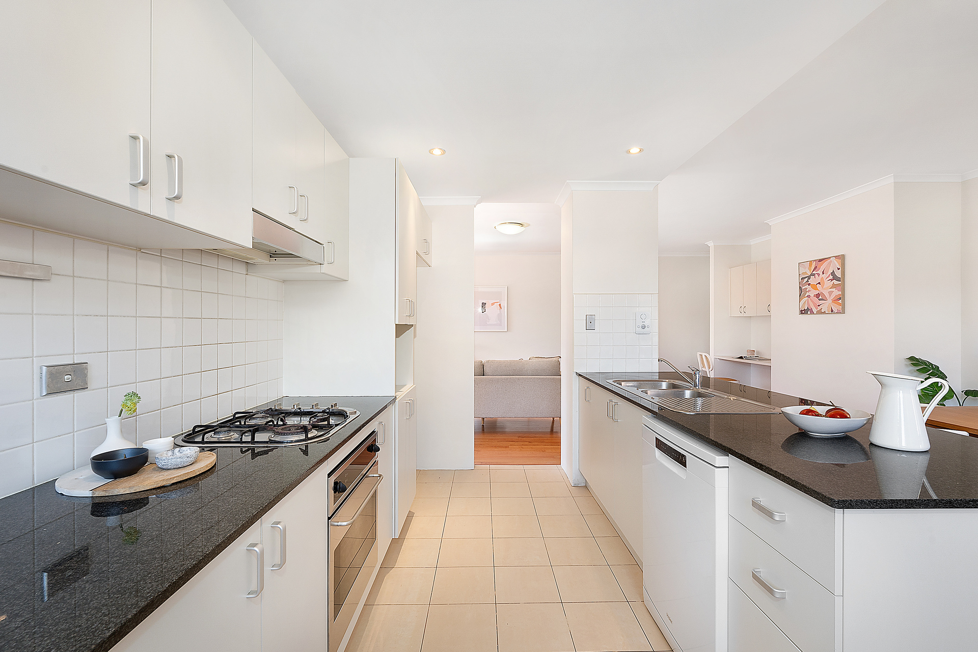 - Flowing hall entry entices to a light bathed open design - Stylish interiors complemented by timber floors and high ceilings - Open living and dining area includes integrated study with built-in desk - Large sunny balcony overlooks the leafy streetscape and Anzac park - Premium kitchen has stainless steel gas appliances and vast stone benchtops - Both bright double sized bedrooms have mirrored built-in robes - Modern finishes enhance the master ensuite and main bathroom