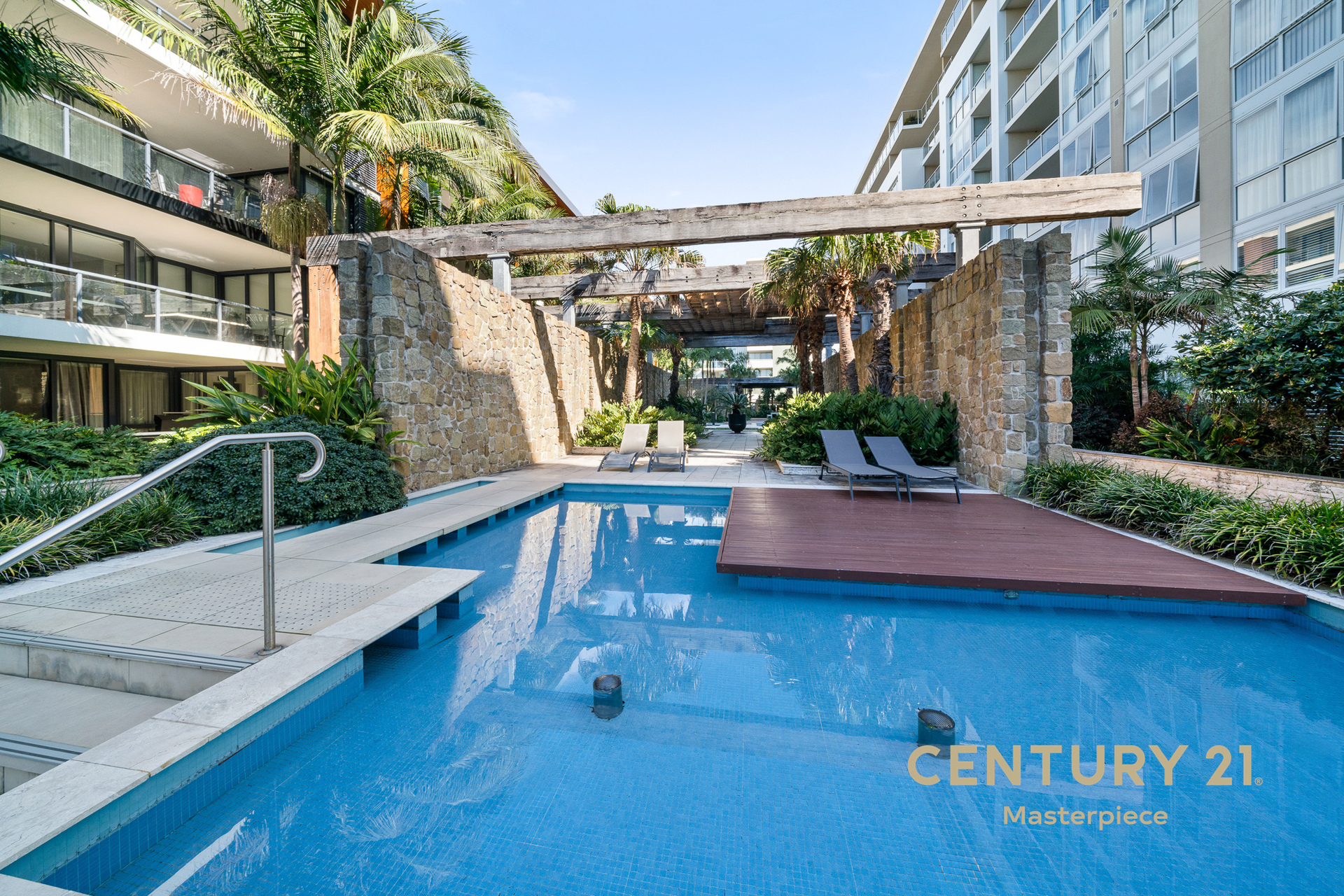 - Massive floor plan: total size 121 sqm; floor area 102sqm - Open plan airy living and dining room allows for optimal natural light - Expansive windows, balcony, and stunning suburban and CBD views - One bedroom with built in robe and one bathroom, internal laundry - Secure car space w/ 2 lock-up storage cages, 24/7 onsite building manager/security - All year-round resort-style heated pool/spa, gym and other facilities - Conveniently located near bus, train, and ferry stops at your doorstep - A short stroll to Ryde Public School