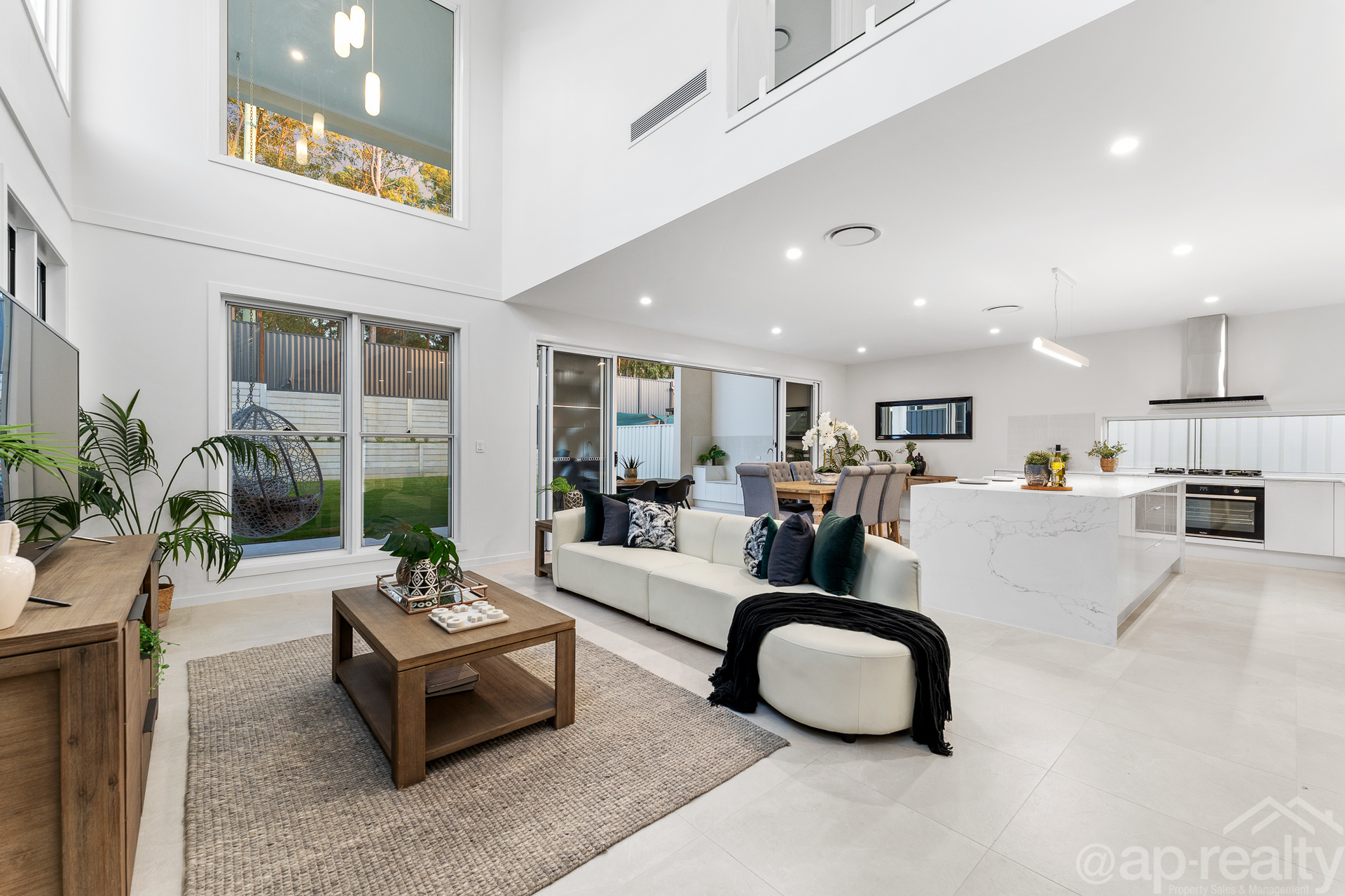 As you step inside, you'll be enveloped in a sense of sophistication. The expansive open-plan layout seamlessly merges the void living, dining, and kitchen areas, creating an unparalleled space for both intimate family moments and grand entertaining. The gourmet kitchen, equipped with top-tier appliances, abundant storage, and a commanding island, serves as the heart of this exquisite home.