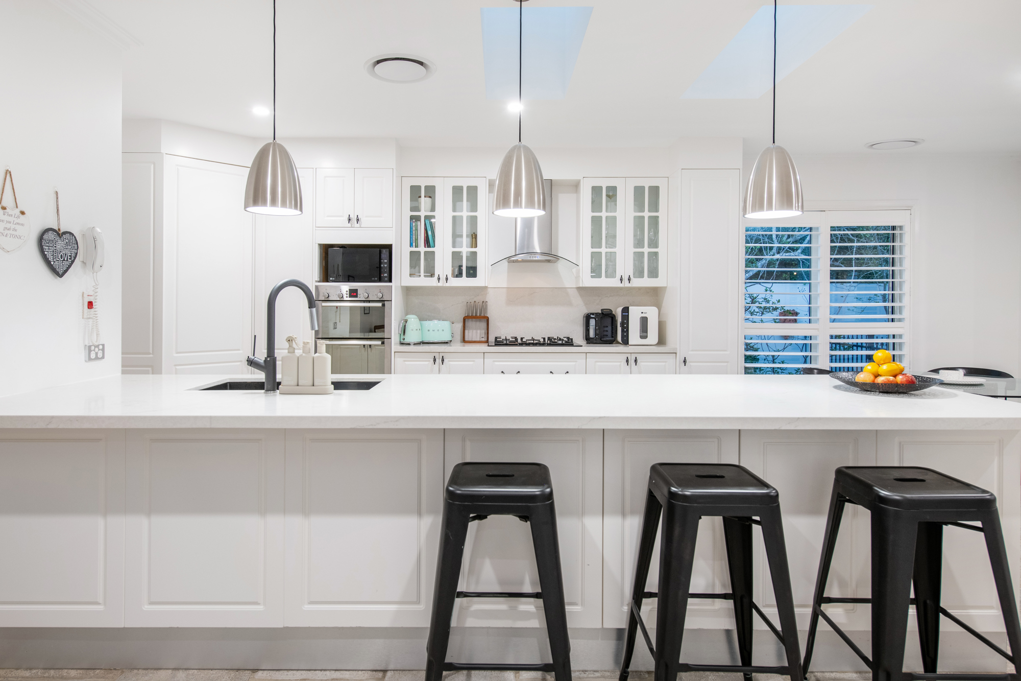 Upon entering, you'll discover multiple living areas on the ground floor, including a formal lounge and dining room, a cozy family room, and a TV lounge, all perfectly positioned around the recently refurbished modern kitchen. The kitchen features an exceptionally long granite countertop and two skylights, making it a dream space for the passionate cook. The well-thought-out downstairs floor plan includes two inviting fireplaces, soaring ceilings, a study/office, and a generously sized en-suite Guest or 2nd Master bedroom. From the family living area, sliding doors open to a charming, covered patio, which overlooks a secluded north facing private pool set amidst beautifully landscaped gardens, an ideal space for relaxation and entertaining. Ascending the staircase, you'll find an airy landing leading to the Master bedroom with a spectacular modern bathroom and walk-in robe, additionally a further two spacious bedrooms which share a Jack and Jill bathroom, offering plenty of room for the whole family.