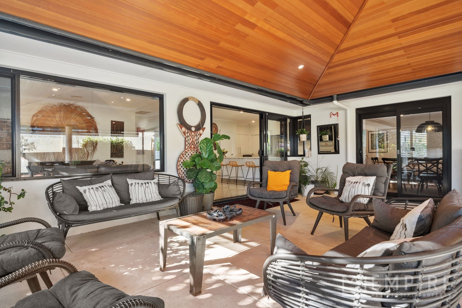 • Automatic garage with storage area • Large cedar lined alfresco with ceiling fan, cafe blinds with BBQ & built in kitchenette – the perfect easy care area for entertaining family and friends