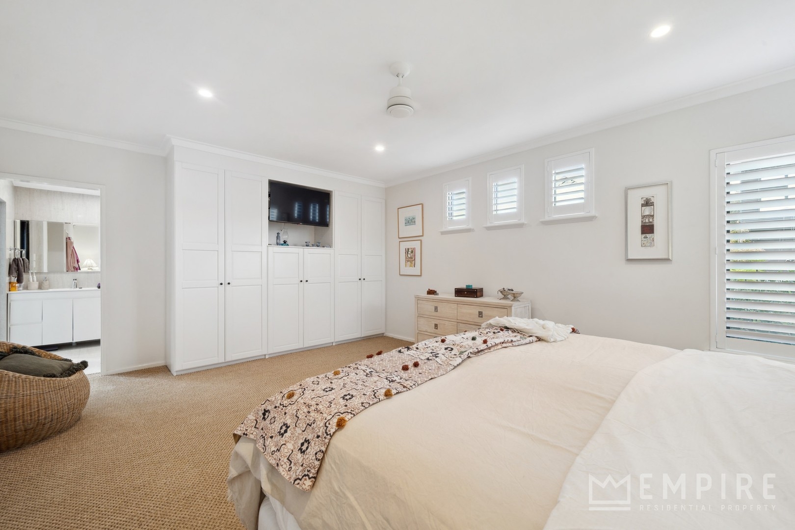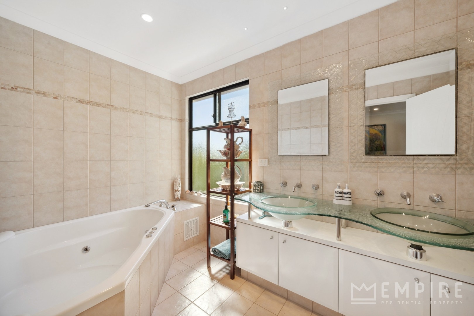• Upstairs bathroom offers shower, single vanity with storage, spa bath, heat lamps and WC - all tiled from floor to ceiling • Bedroom 3 is queen sized with ceiling fan • Bedroom 4 is double sized with built in robe and ceiling fan • Bedroom 5 is double sized with built-in robe and ceiling fan • Downstairs bathroom offers hobless shower, single vanity with stone benchtops and storage - all tiled from floor to ceiling