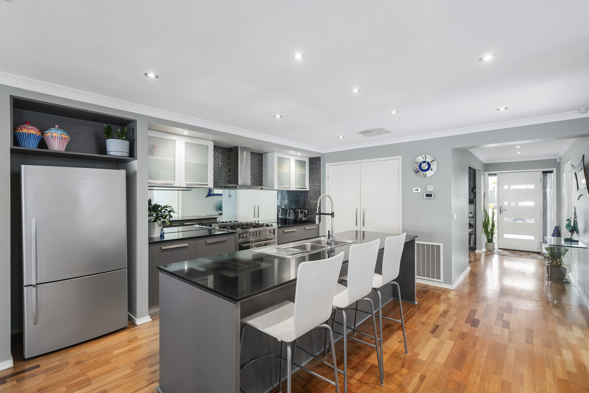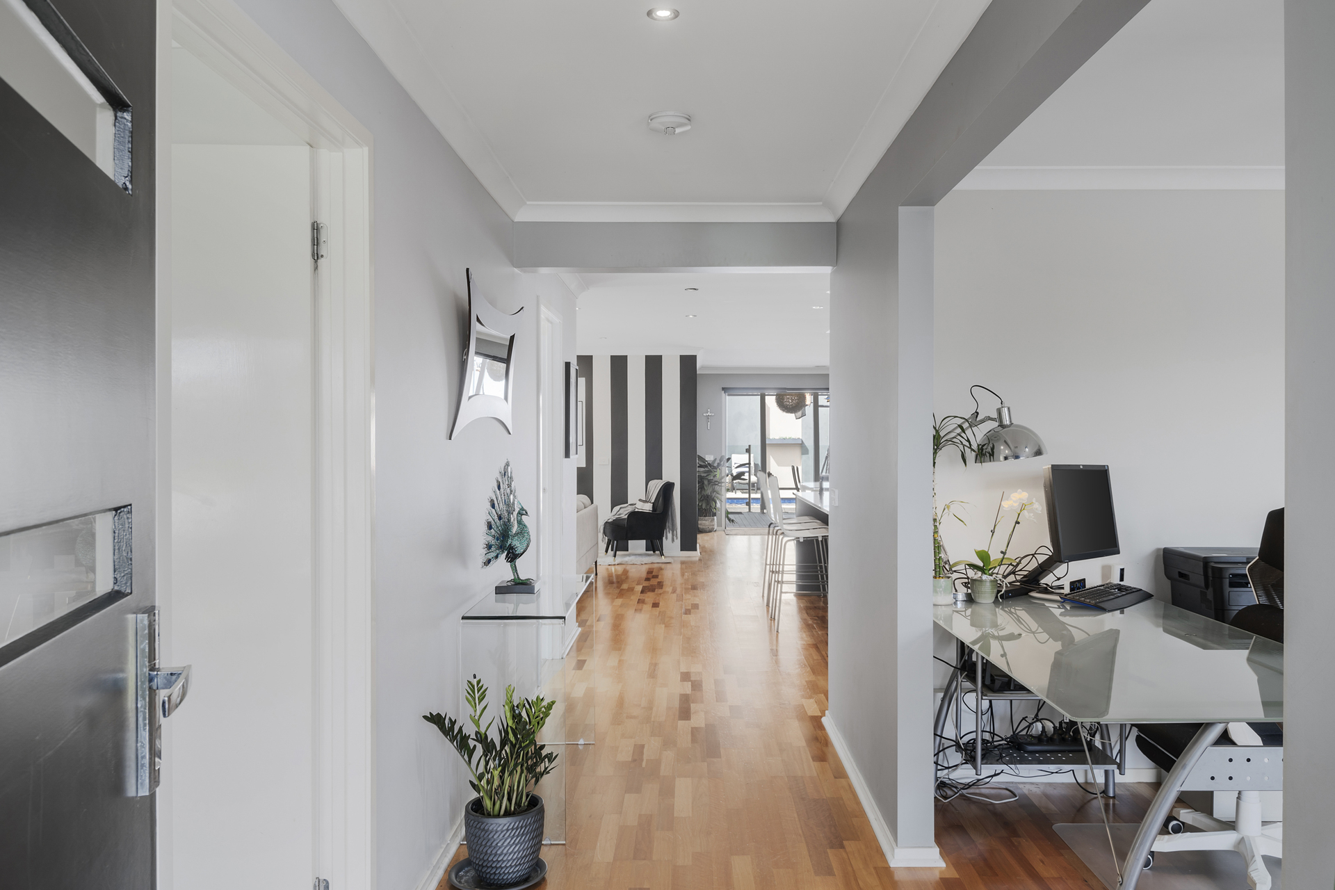 The master bedroom offers a private retreat with a sleek ensuite and walk-in robe, while the other bedrooms all have built-in robes, designed to provide flexibility and comfort. The bathrooms add a touch of luxury. Step outside to your backyard oasis, where you'll find a large sparkling salt-water solar-heated in-ground pool surrounded by lush grass, perfect for kids and pets to enjoy. The outdoor space is ideal for entertaining, with plenty of room for outdoor furniture and an outdoor kitchen setup, creating the perfect environment for gatherings. With local shops, parks, schools, and public transport close by, 58 Penrose Promenade offers the ideal blend of style, convenience, and family-friendly living.