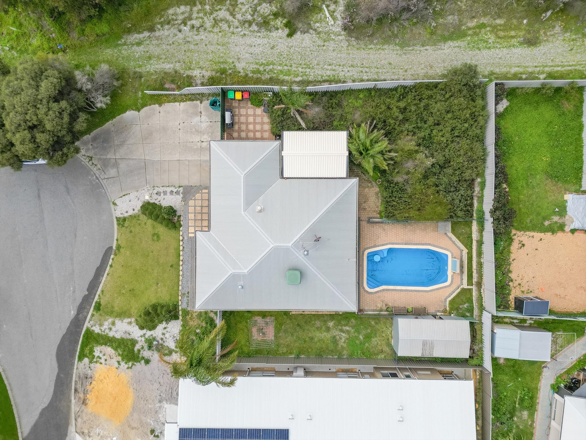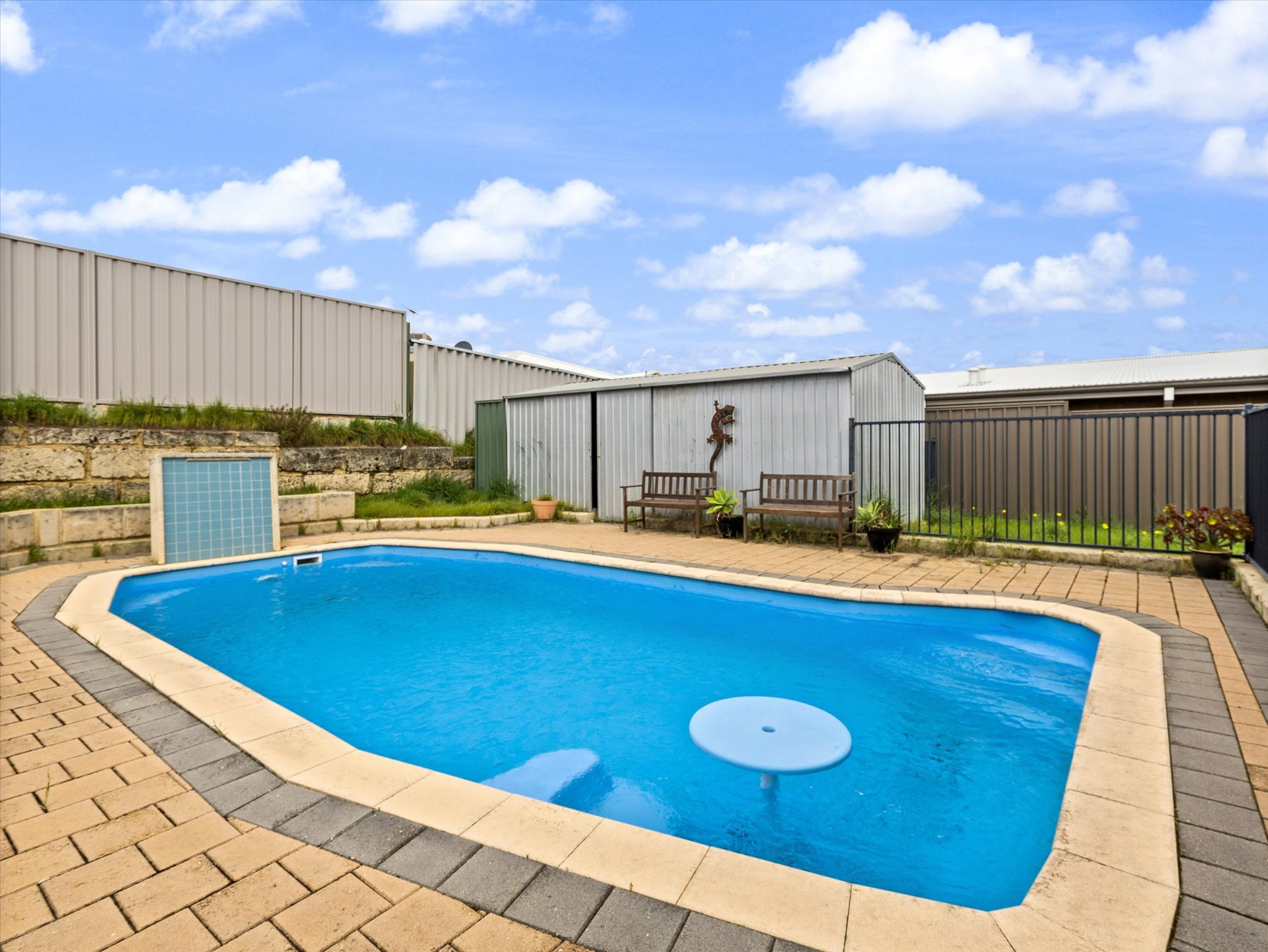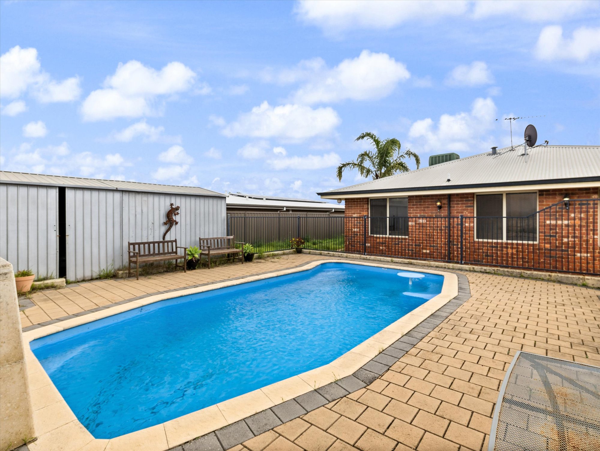 • North/South Facing: Enjoy natural light throughout the day, with a sunken, north-facing lounge that's perfect for relaxing. • Open Plan Living: Spacious kitchen, dining, and living area, ideal for family gatherings and entertaining. • Ducted Air Conditioning: Keep cool in summer with a fully ducted system. • Functional Kitchen: Featuring electric cooking, a breakfast bar, pantry, and overhead cupboards. • Master Suite: Includes an ensuite and walk-in robe, with built-in robes in all other bedrooms. • Outdoor Living: Dive into the below-ground pool, perfect for those warm summer days. Enjoy outdoor entertaining under the large pitched roof Colorbond patio. • Low Maintenance Gardens: Reticulated and easy to care for, with a large garden shed providing ample storage or workspace for tradies. • Single Carport: Roller door access with drive-through access to the patio area. • High Colorbond Fencing: Ensures privacy and security for your family.