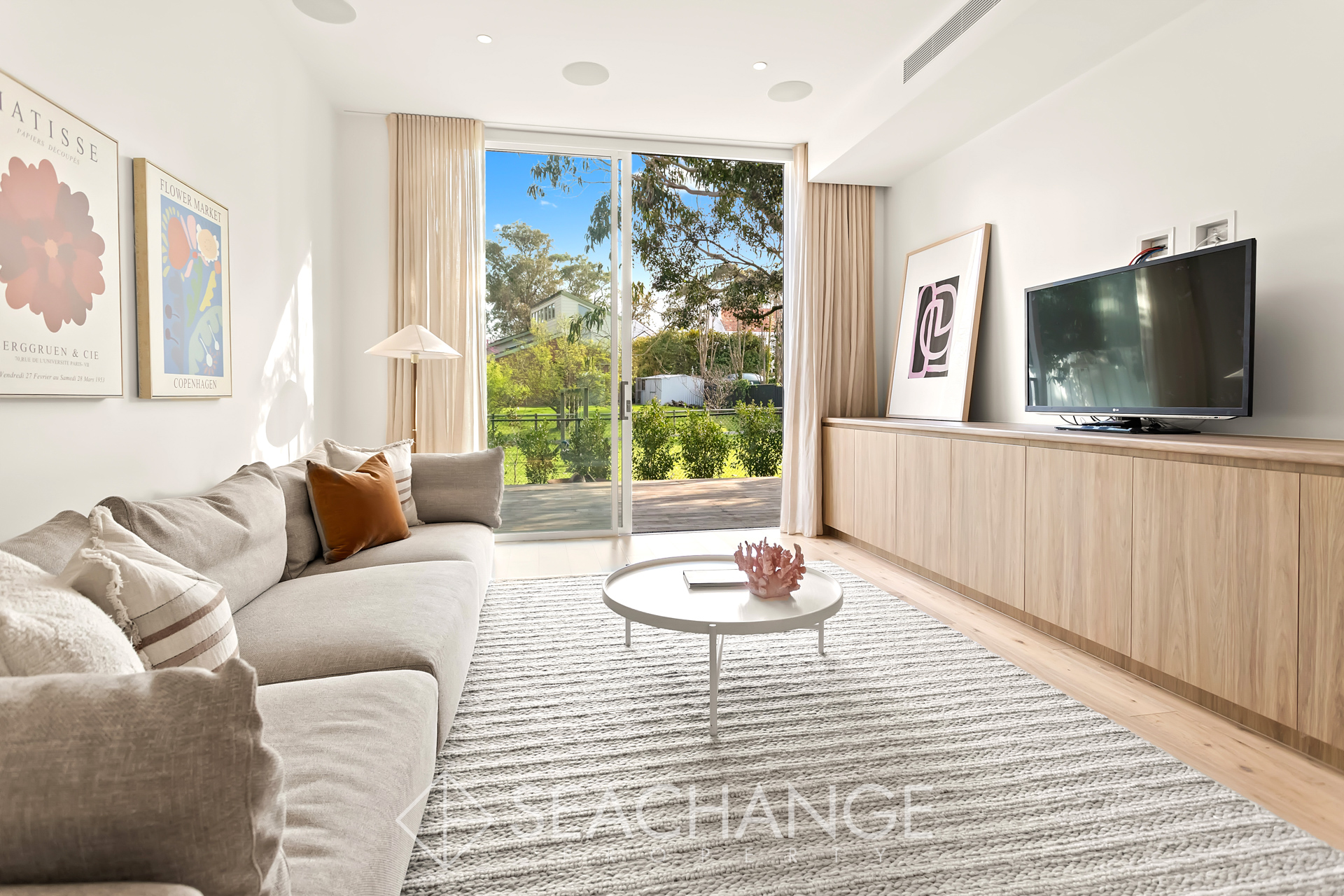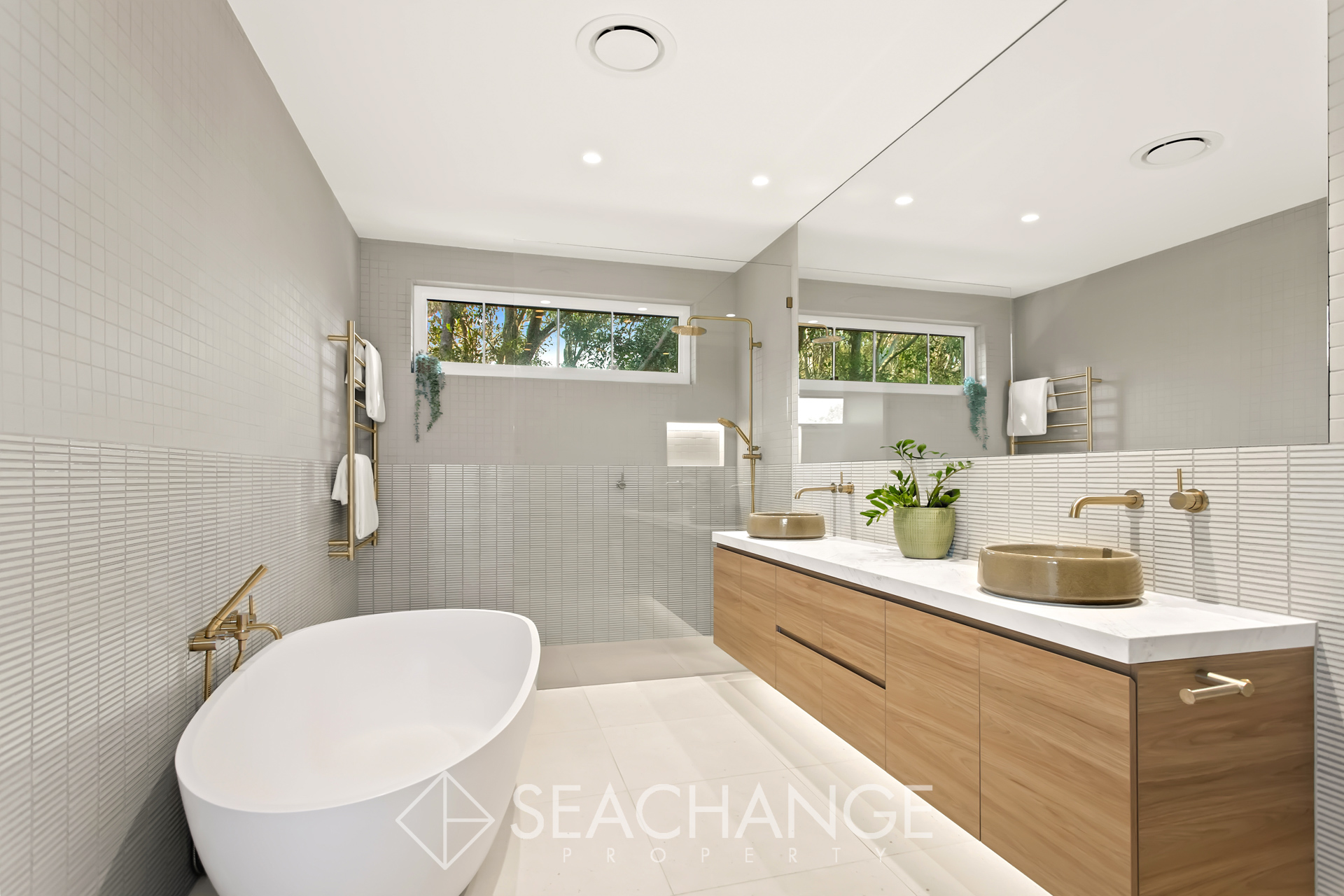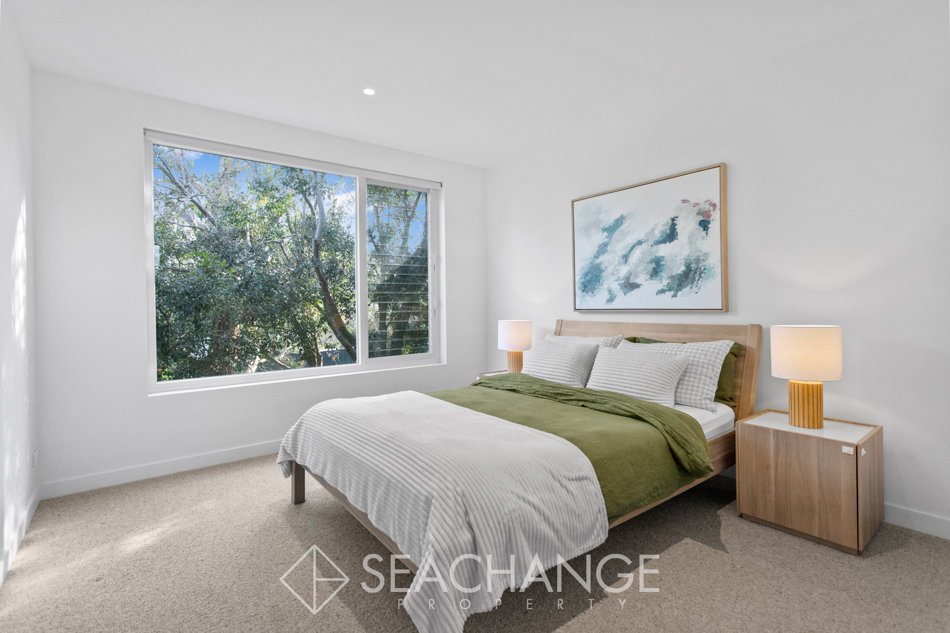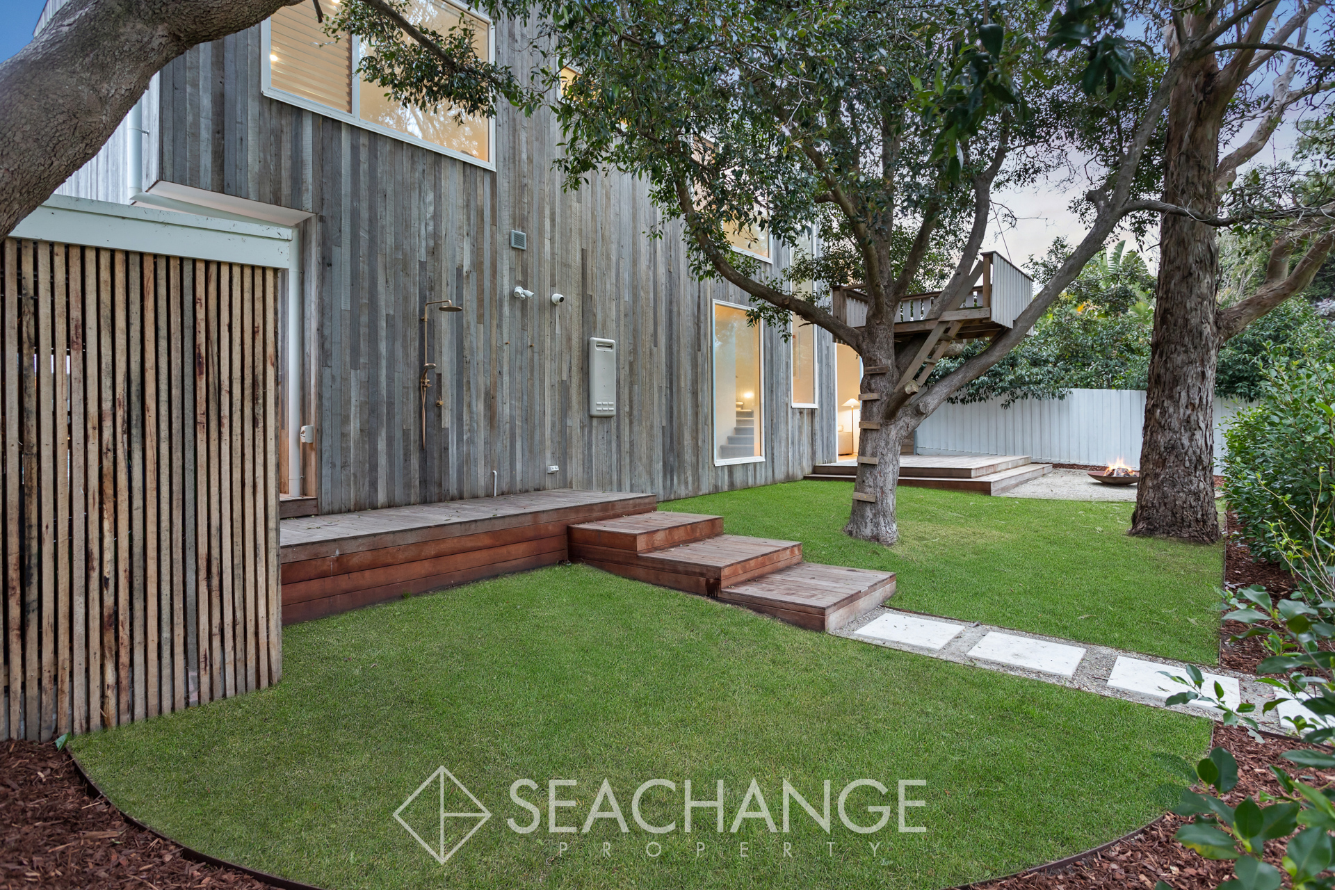 Architecturally designed for privacy, the master bedroom continues with sumptuous proportions through the walk-in wardrobe and ensuite bathroom. A harmony of Artedomus tiles brings together a Victoria & Albert bathtub, double shower, Brodware taps and bespoke Robert Gordan ceramic basins. Upstairs three additional bedrooms include walk-in robes and individual R/C cassette systems. Considered for flexibility the pool house and lower level living space allow the floorplan to evolve with the demands of entertainment and accommodation. The floorplan concludes with a traditonal style sauna and small rear yard space opening to the private neighbourhood reserve that leads through to Ranelagh Beach.