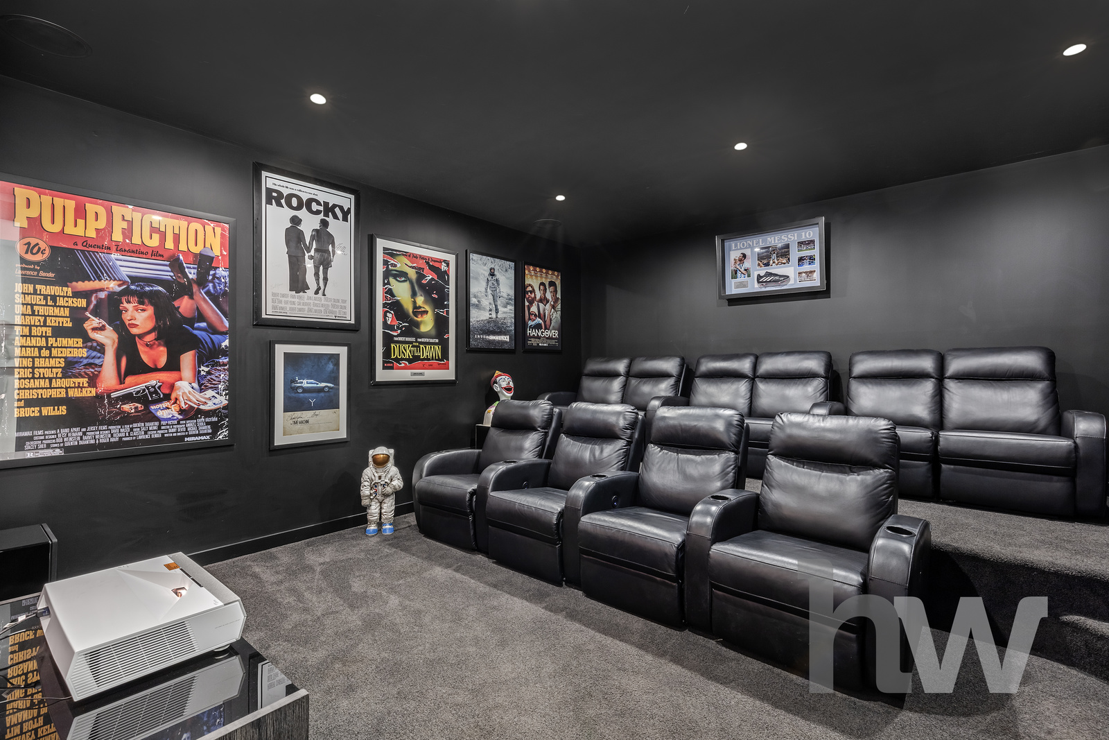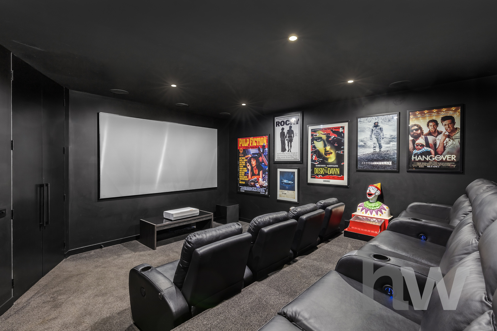 Entertainment at Its Finest A 10-seat cinema room beckons, equipped with a state-of-the-art laser projector with a 3 meter screen and commercial-grade sound system. Flow seamlessly into the open-concept kitchen, dining and living areas, accentuated by a stunning split skylight that floods the space with natural light.