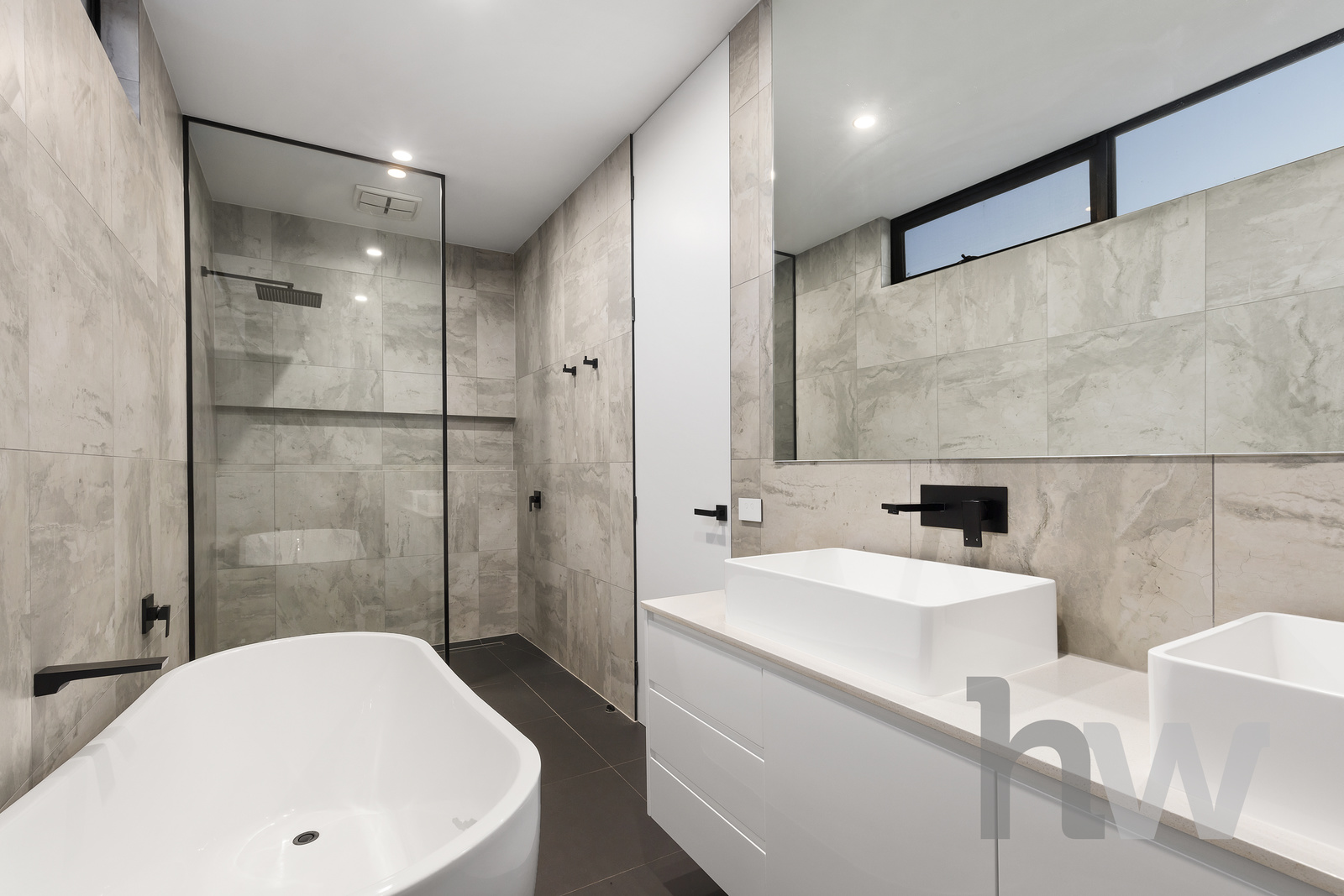 Luxurious Accommodations Upstairs, enjoy an additional living area or fourth bedroom, along with two further oversized bedrooms featuring walk-in robes and serviced by a central bathroom with double walk in shower and bath tub. The pièce de résistance is the expansive master suite, reminiscent of a penthouse. Complete with a full dressing room and a lavish bathroom featuring a double shower, free standing bath tub and ambient lighting.