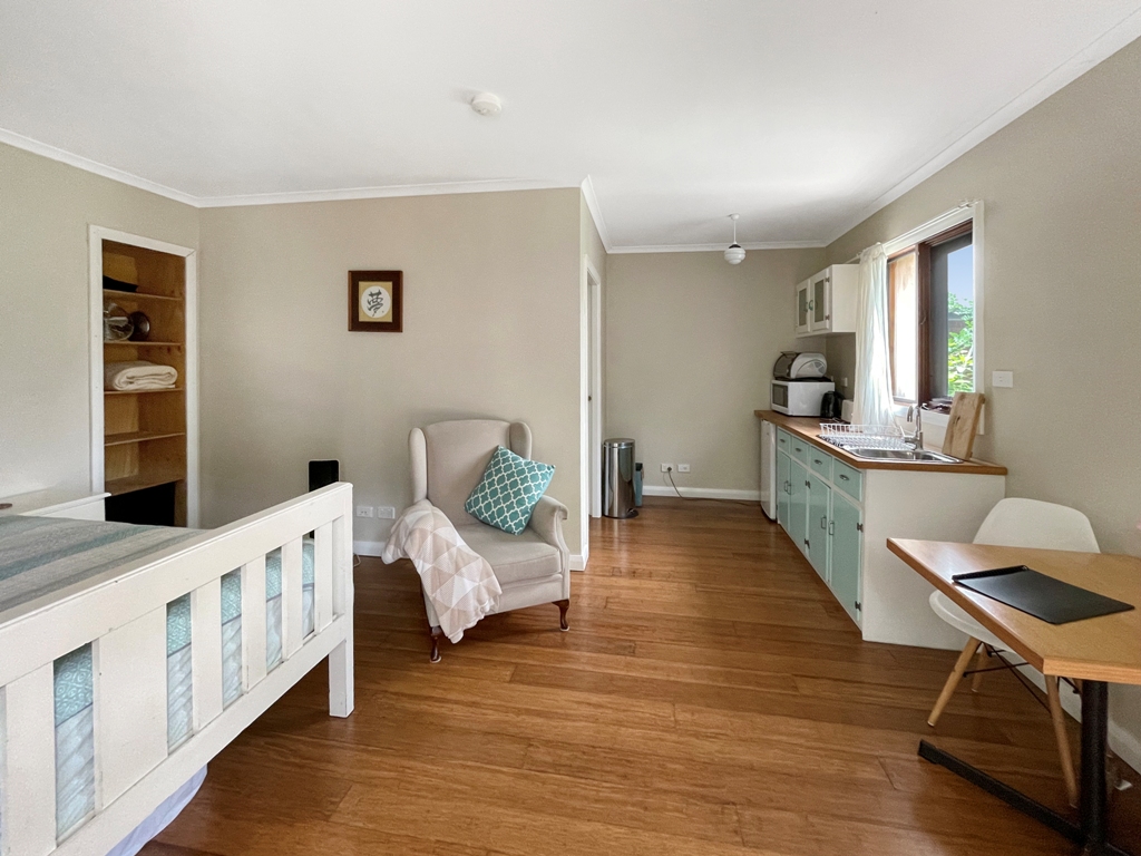 LAYOUT Main floor with incredible light-filled open-plan layout opening out to the deck with a northern aspect, stunning central bathroom, and two of the five bedrooms, all of which have built in robes. The ground level hosts a second living room with direct access to the yard filled with fresh produce to enjoy. Also on the ground level is the internal laundry, family bathroom and three of the bedrooms. The detached studio with kitchenette gives extended family and guest accommodation, or passive income opportunities complete the home.